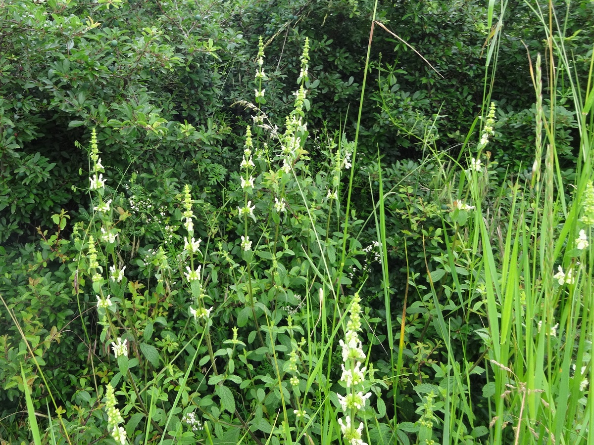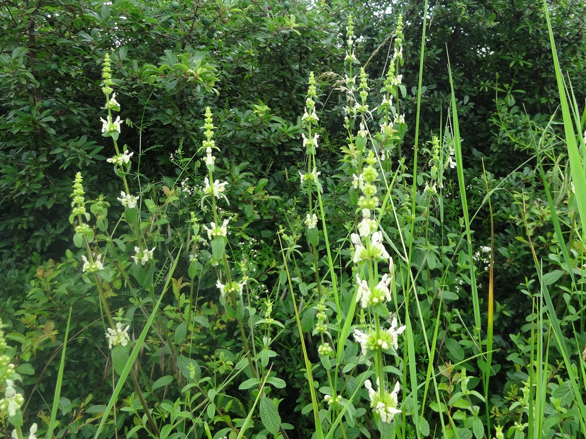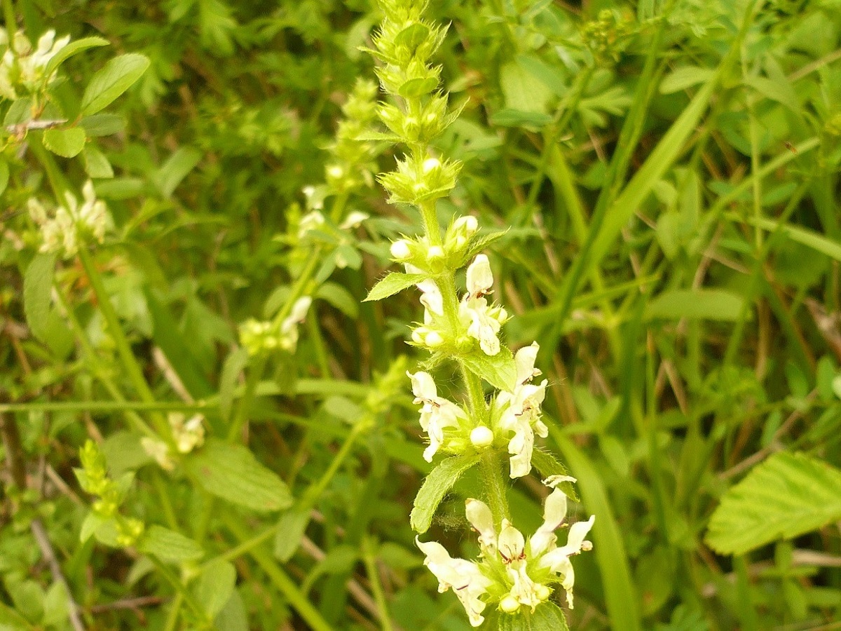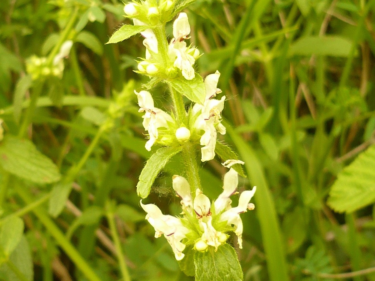 Hc – 2-6 dm – Feuilles L de 2-8 cm oblongues assez étroites crénelées, ± pétiolées – Inflorescence en long épi dressé ± arqué, corolle bilabiée blanche à jaune pâle L de 1,5-2 cm, étroite