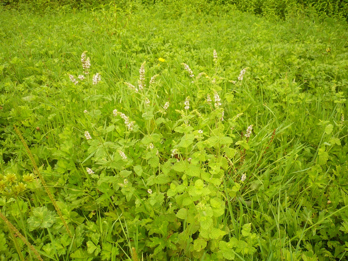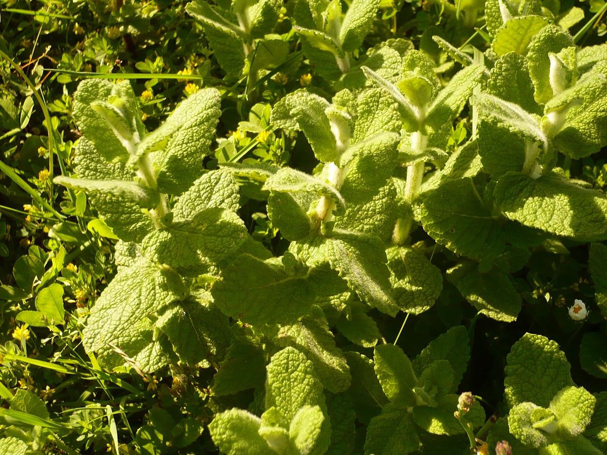 Hc – 2-6 dm – Odeur faible, feuilles L de 3-4,5 cm larges ovales obtuses, gaufrées dentées, velues grisâtres, sessiles – Verticillastres en épi terminal ± étiré, corolle de L ≃ 5 mm rosée