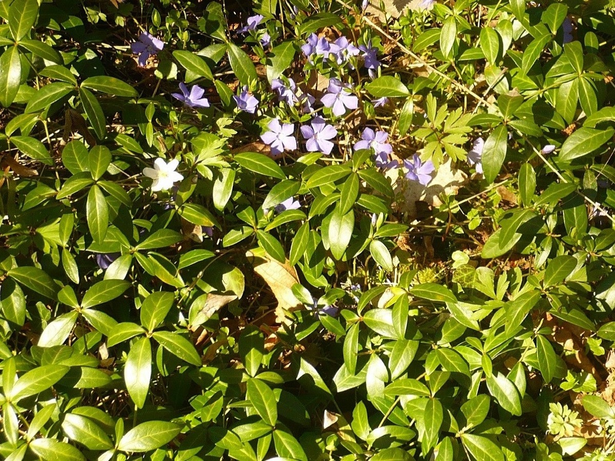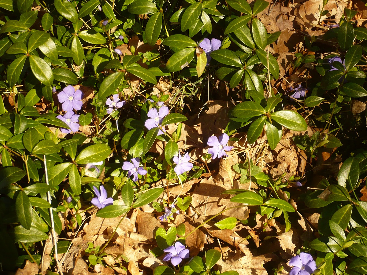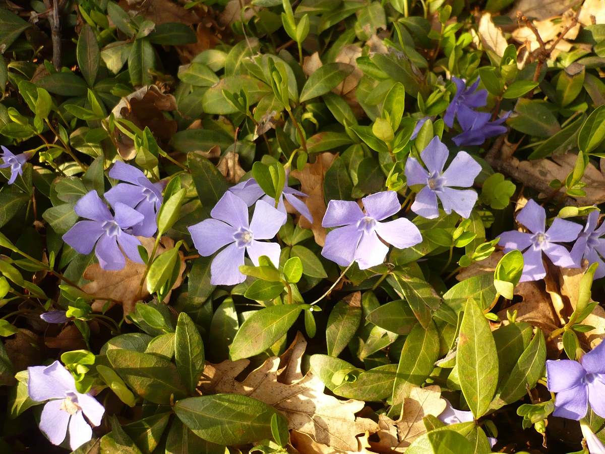 Ch – 1-3 dm – Rampante, feuilles L de 2-4 cm elliptiques lancéolées, coriaces, persitantes – Fleurs bleu violet de Ø 2,5-3 cm à tube de L ≃ 1 cm et 5 lobes formant une hélice, pédicelle long