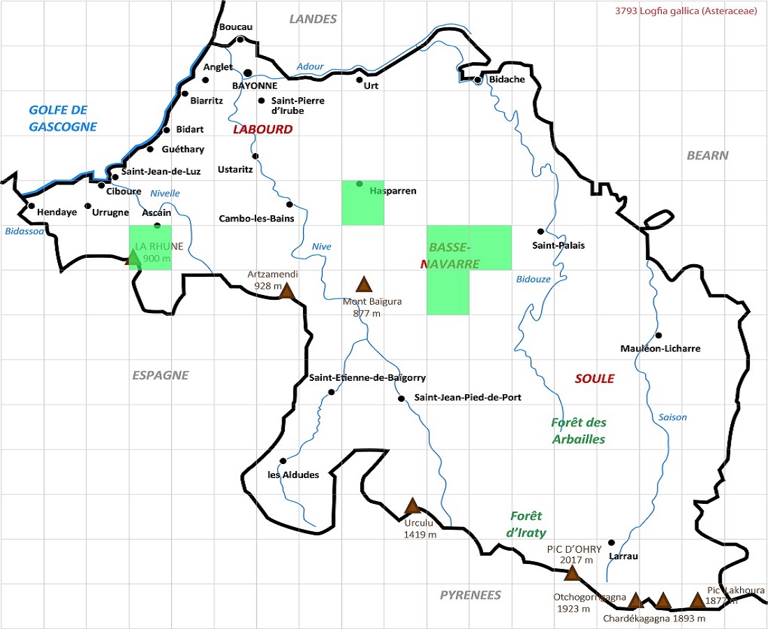 Nom Latin du taxon (Famille) Logfia gallica (Asteraceae) - Synonymes Latins – (Syn. Filago gallica) Nom Français du taxon Cotonnière de France - Autres Noms Français - nc Nom en Euskara nc - Autres Noms en Euskara - nc Identifiant 3793
