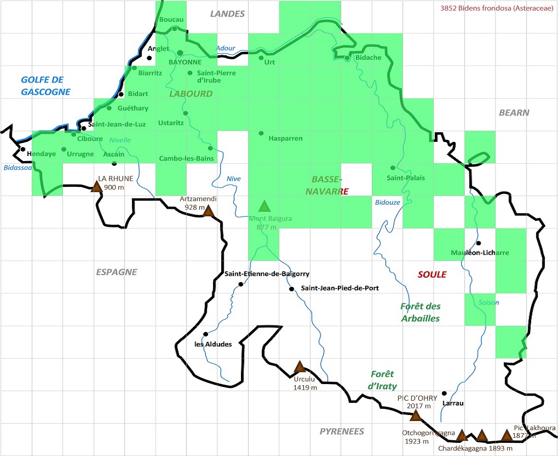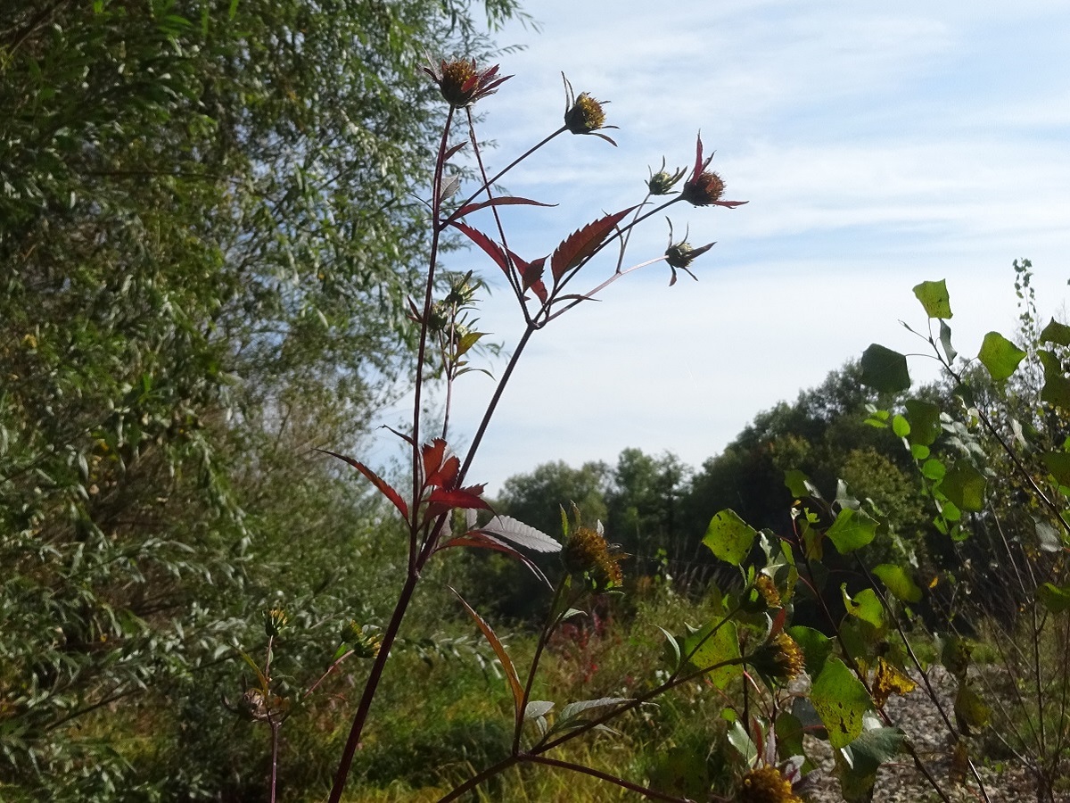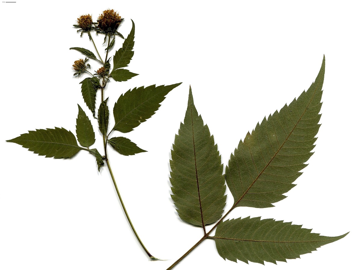 Th – 5-15 dm – Feuilles 3- à 5-pennées, segments lancéolés acuminés dentés, pétiolulés – Capitules de Ø ≃ 1,5 cm, disque jaune, 5-8 bractées rayonnantes – Akènes à 2 arêtes