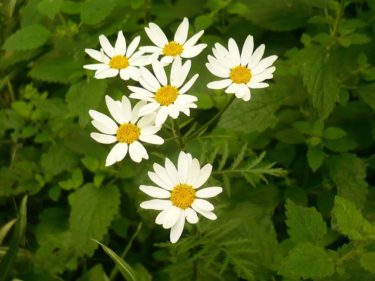 Hc – 5-15 dm – Dressée, feuilles pennées à segments incisés, à dents aiguës – Corymbe de 3-15 capitules de Ø 2-4 cm, disque jaune, hémiligules blanches, bractées à marge brunâtre