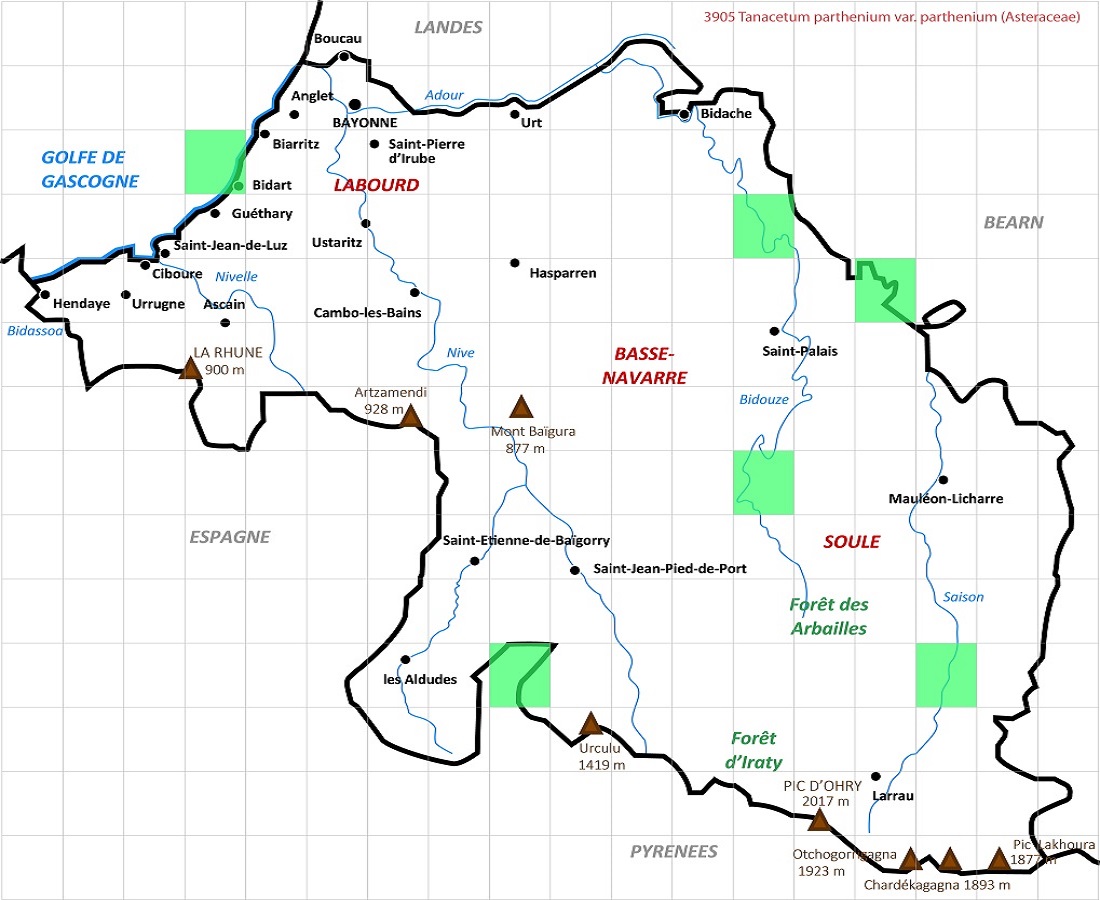 Nom Latin du taxon (Famille) Tanacetum parthenium var. parthenium (Asteraceae) - Synonymes Latins – (Syn. Chrysanthemum parthenium) Nom Français du taxon Grande Camomille - Autres Noms Français - nc Nom en Euskara nc - Autres Noms en Euskara - nc Identifiant 3905