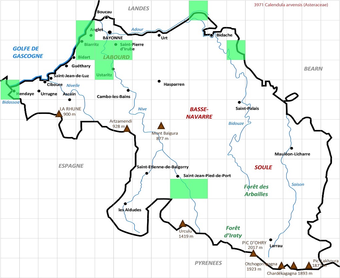 Nom Latin du taxon (Famille) Calendula arvensis (Asteraceae) - Synonymes Latins - nc Nom Français du taxon Souci des champs - Autres Noms Français - nc Nom en Euskara Basa Ilena - Autres Noms en Euskara - nc Identifiant 3971