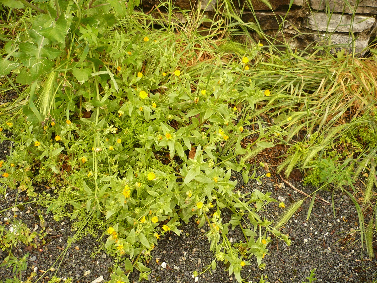 Th – 1-3 dm – Feuilles L de 3-8 cm lancéolées aiguës – Capitules de Ø 1,5-2,5 cm, fleurons et hémiligules jaune ± orangé, bractées longues – Akènes arqués épineux, ailés ou annelés
