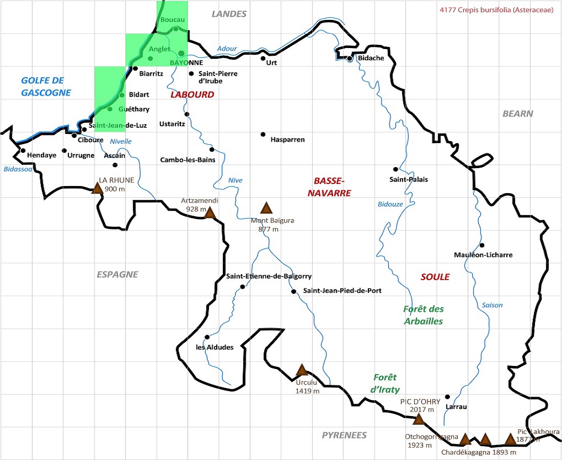 Th/Hc – 1-2 dm – Feuilles < pennées à lobe terminal plus grand, dents coriaces, les > linéaires – Boutons dressés, capitules de Ø 2-3 cm, ligules jaunes à revers livide, involucre étroit