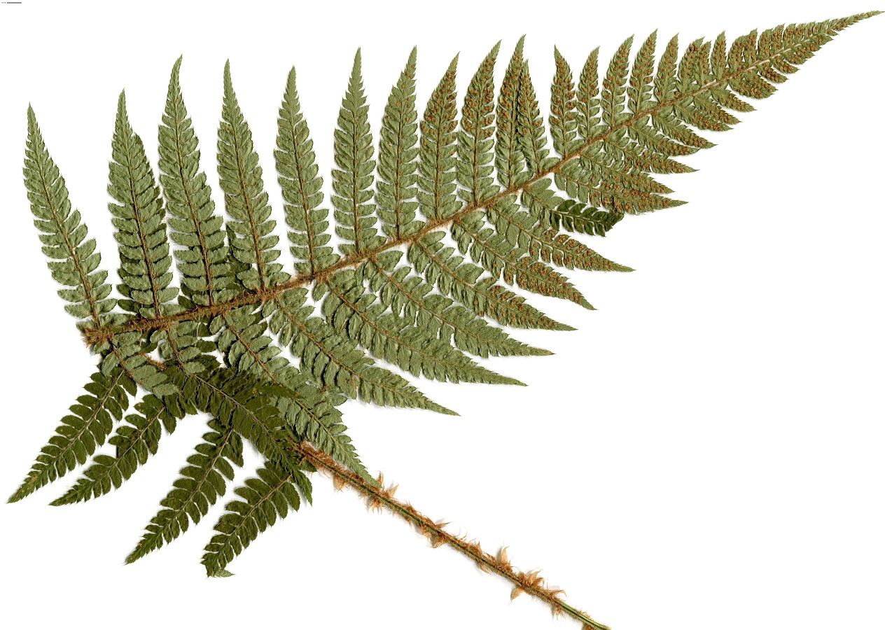 Hc – 5-10 dm – Limbe large, non coriace, 2 fois divisé en pennes ± en faux, les basales peu réduites, pinnules de L ≤ 16 mm auriculées, pétiolulées – Sores bruns ronds, séparés