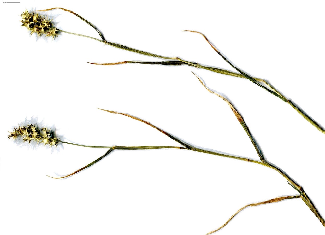 Th – 1-5 dm – Tige ascendante, feuilles glabres, ligule assez courte – Inflorescence ovoïde oblongue, à « involucre » de soies très épineuses, à base soudée en cupule large