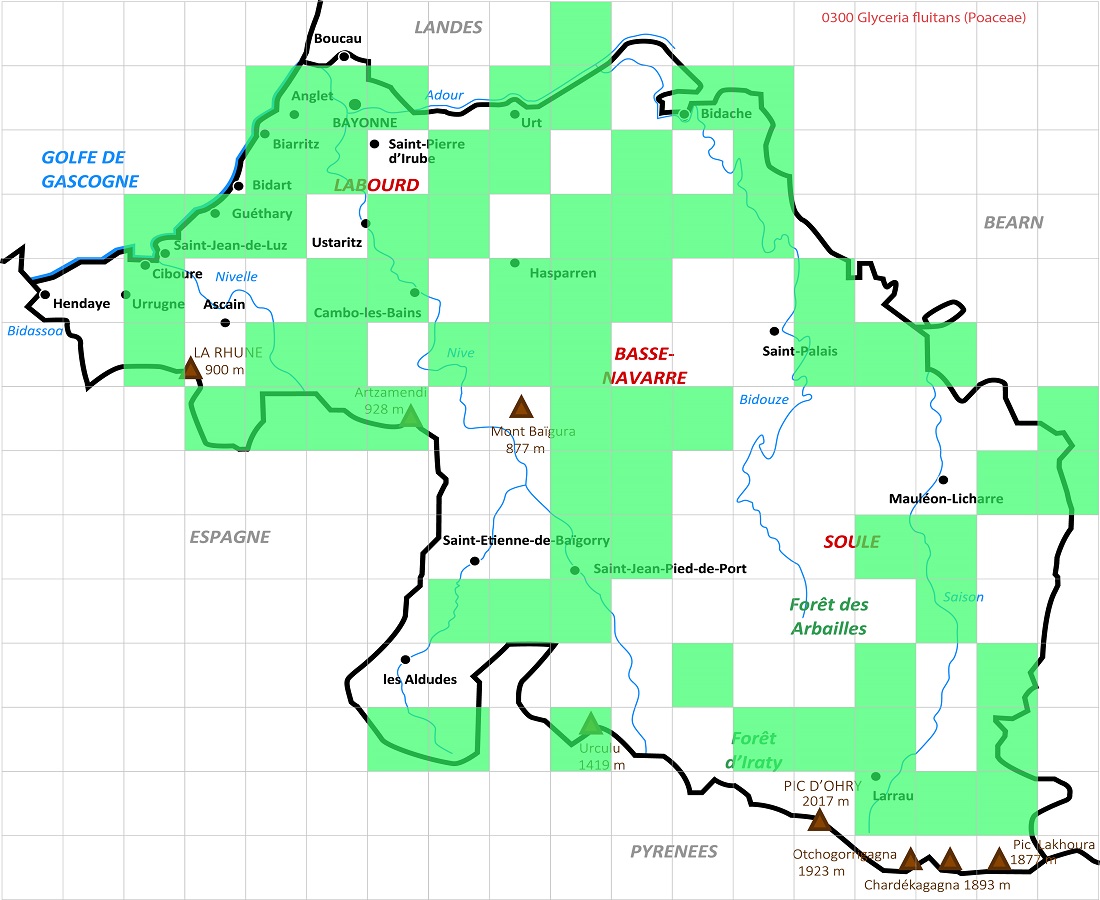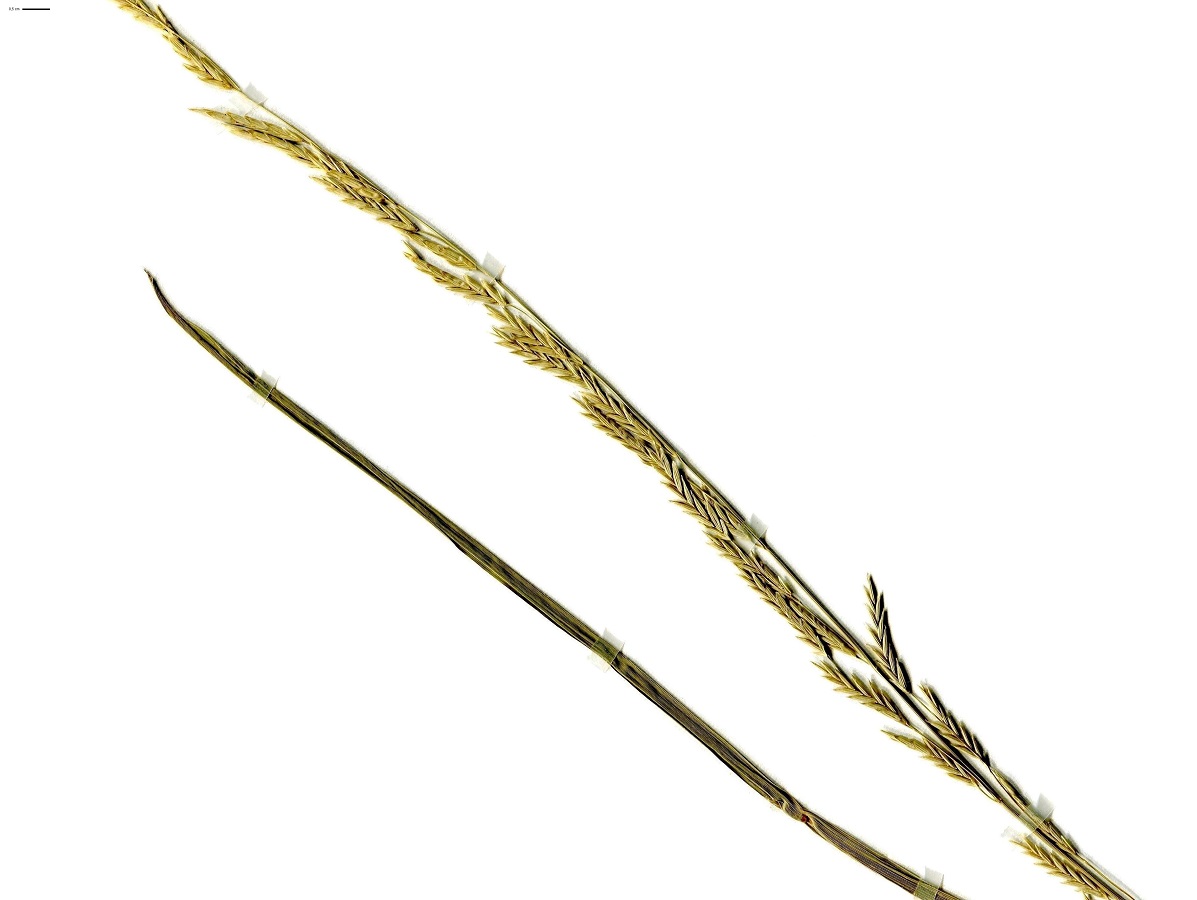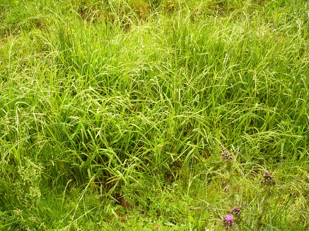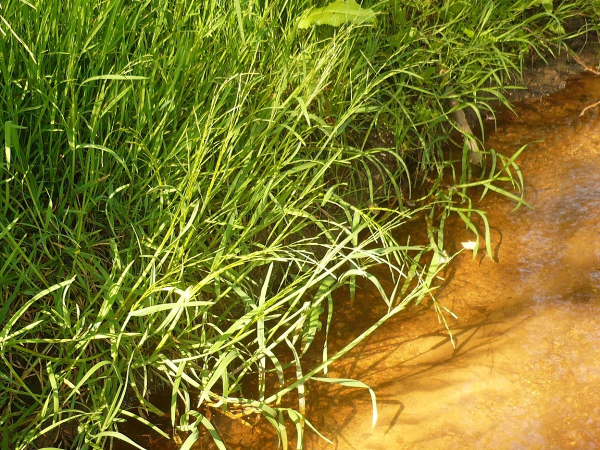 Hydr Hc/Hc – 5-15 dm – Feuilles longues vertes, flottantes à émergées – Longue panicule retombante ± composée, unilatérale, lemme (L ≃ 6 mm) aiguë, anthères (L ≃ 2 mm) violettes
