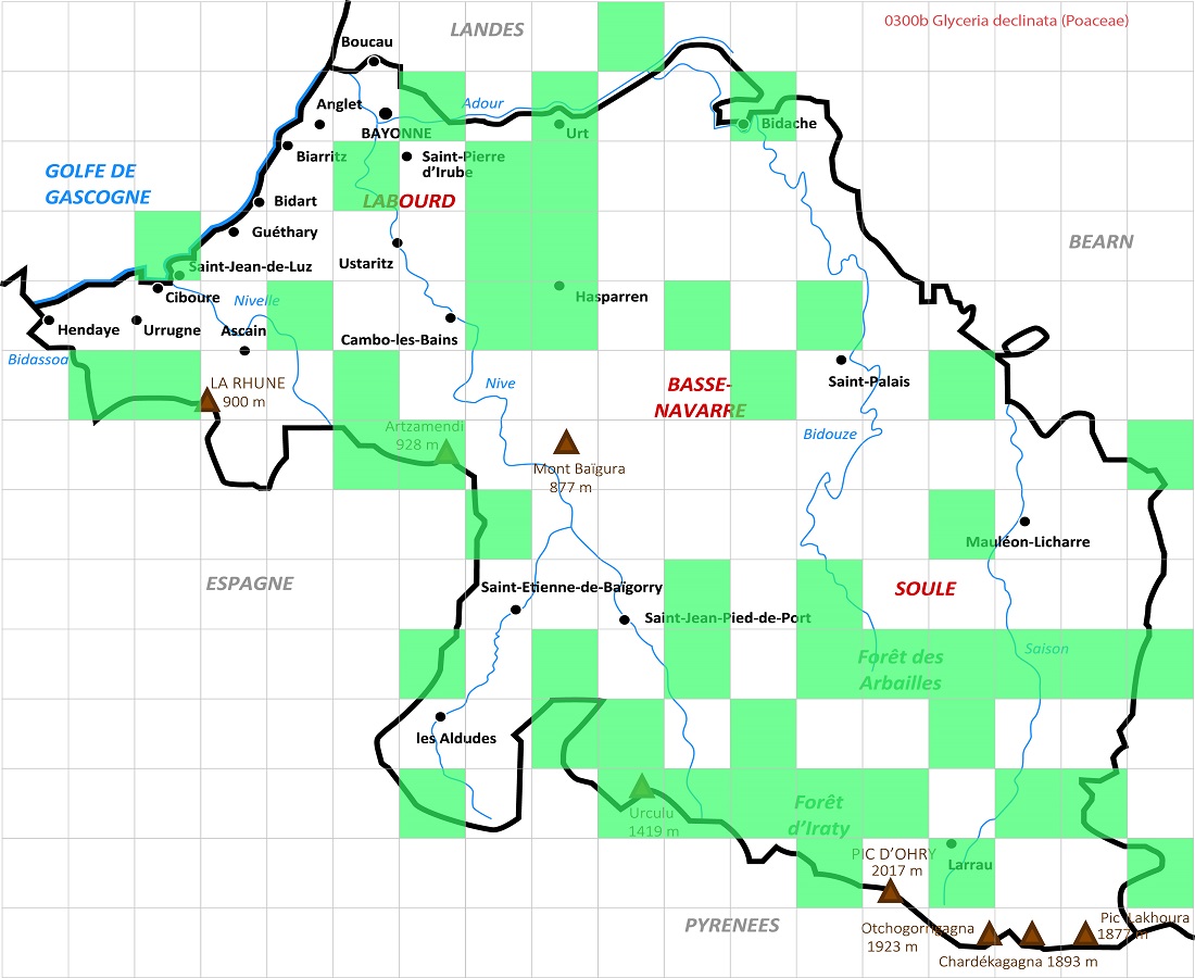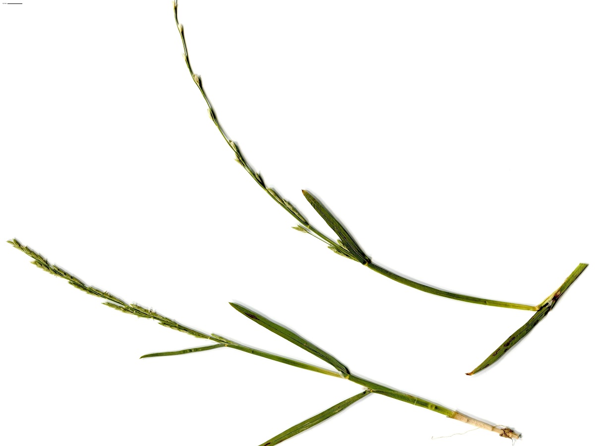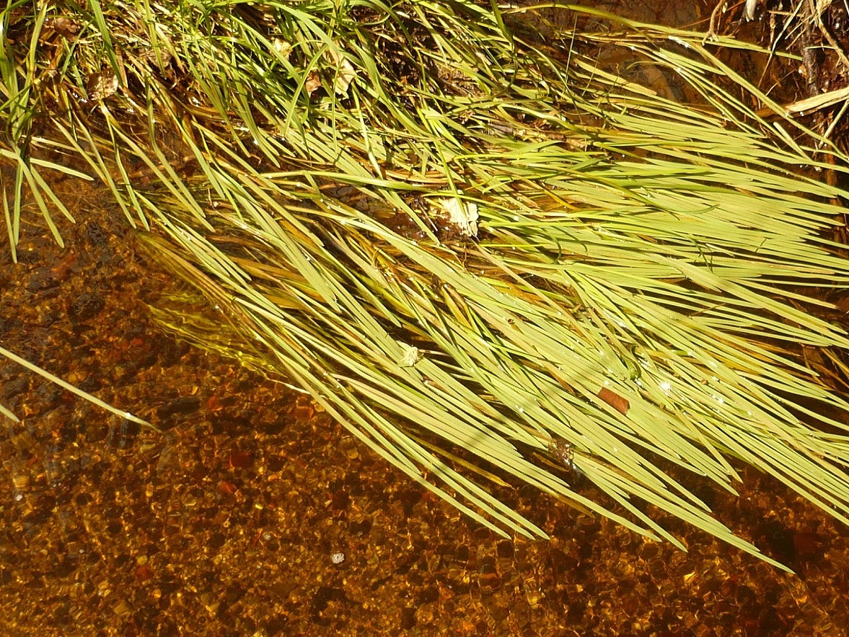 Hc – 3-6 dm – Feuilles courtes glauques contractées au sommet, flottantes à émergées – Inflorescence ± simple courbe, étroite, lemme (L ≃ 4 mm) dentée, anthères (L ≃ 1 mm) violettes