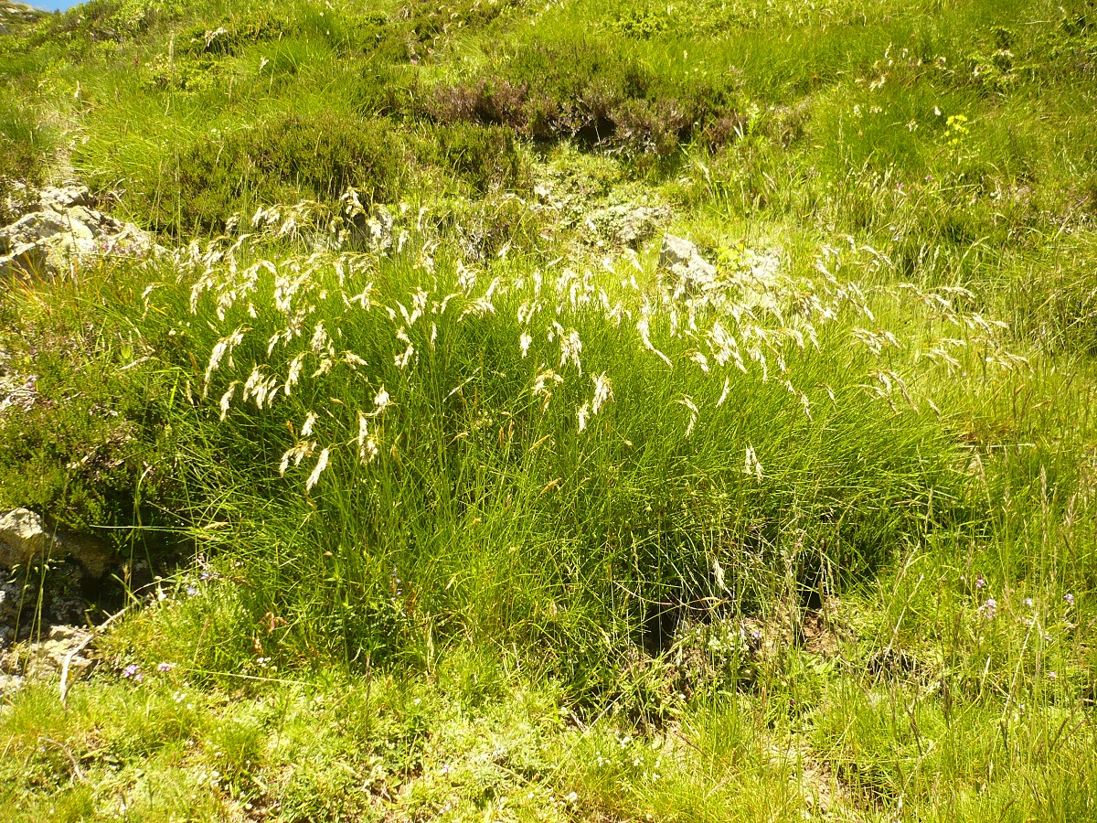Hc – 3-5 dm – Feuilles jonciformes très longues, arquées, lisses, rigides, piquantes, ligule L de 4-7 mm – Panicules inclinées courtes (L = 5-9 cm) et fournies, lemme scarieuse, arête courte