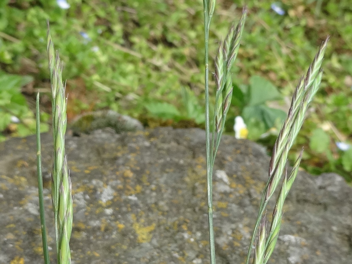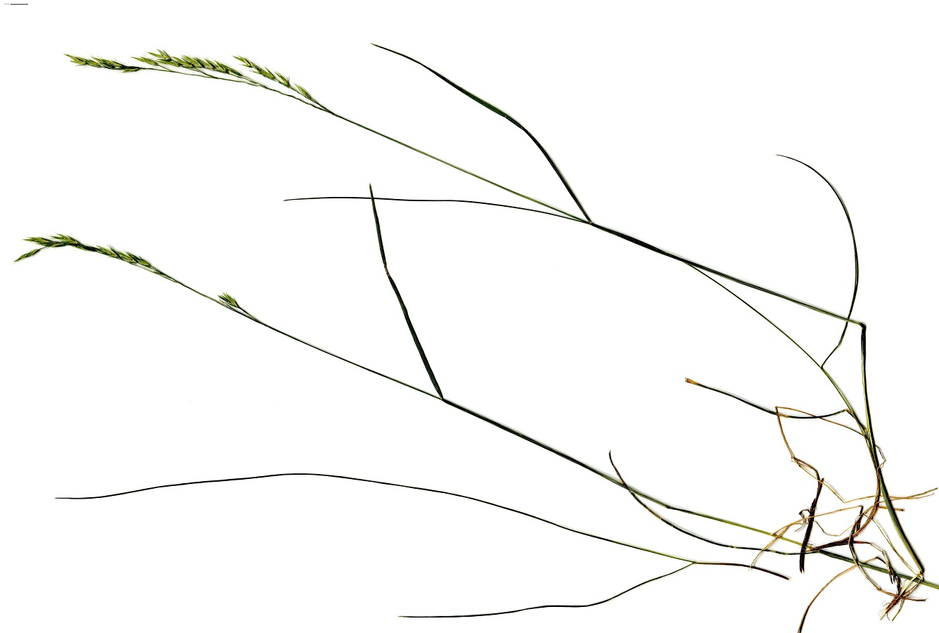 Hc – 4-8 dm – À rhizome, base des gaines rouges, feuilles basales enroulées, souples, très effilées, les > plus larges – Panicule ± arquée et contractée, épillets de L ≃ 10 mm ± violacés