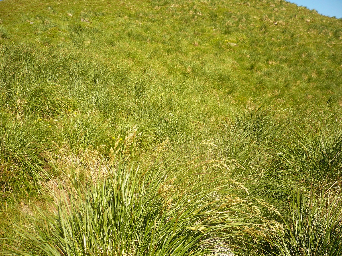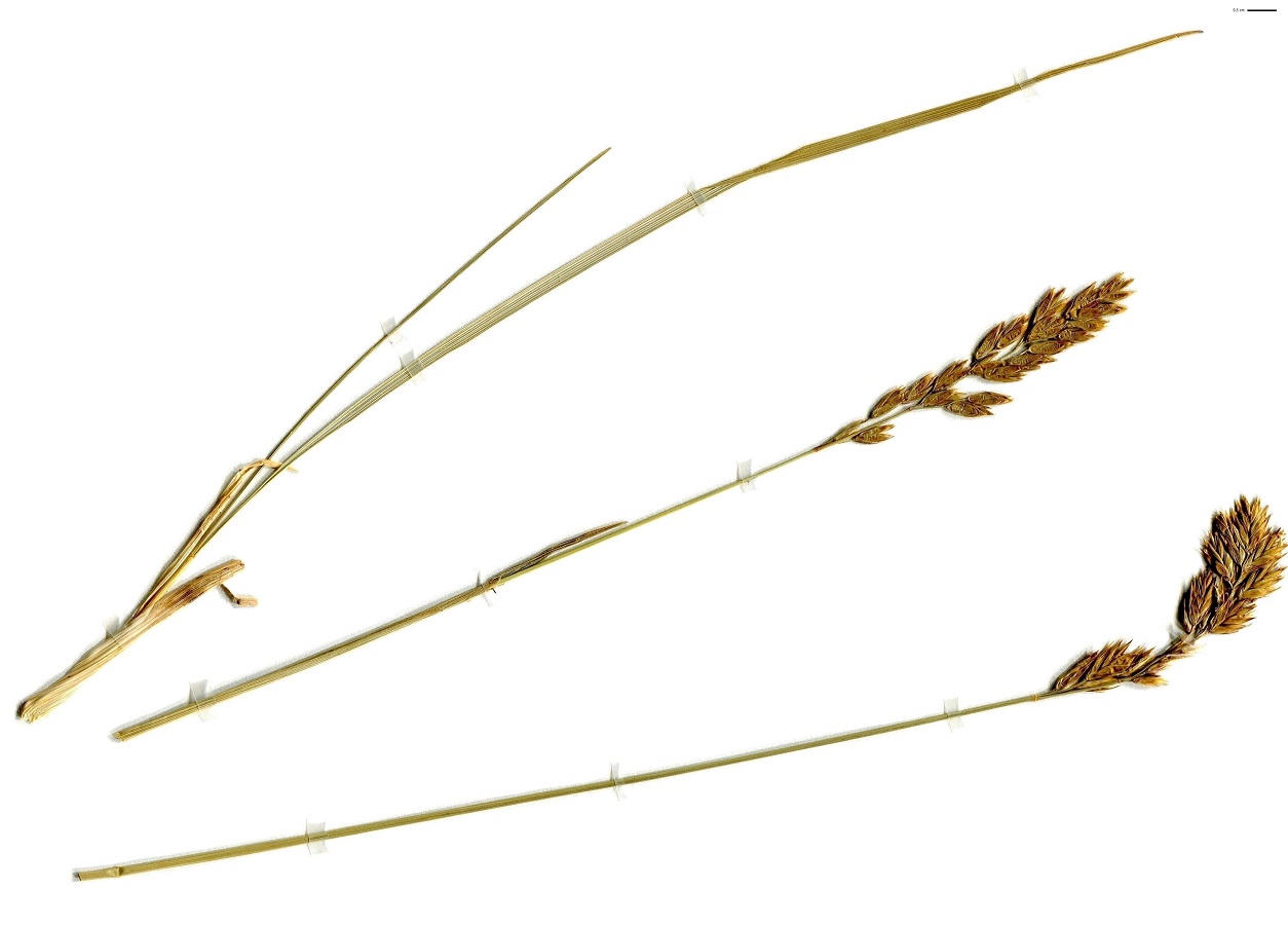 Hc – 6-12 dm – Longues feuilles planes, rigides, glauques, à base bulbeuse – Panicule courte de 4-10 cm ± contractée, à épillets assez gros de L ≃ 1 cm fauves, lemme inférieure de L ≤ 8 mm
