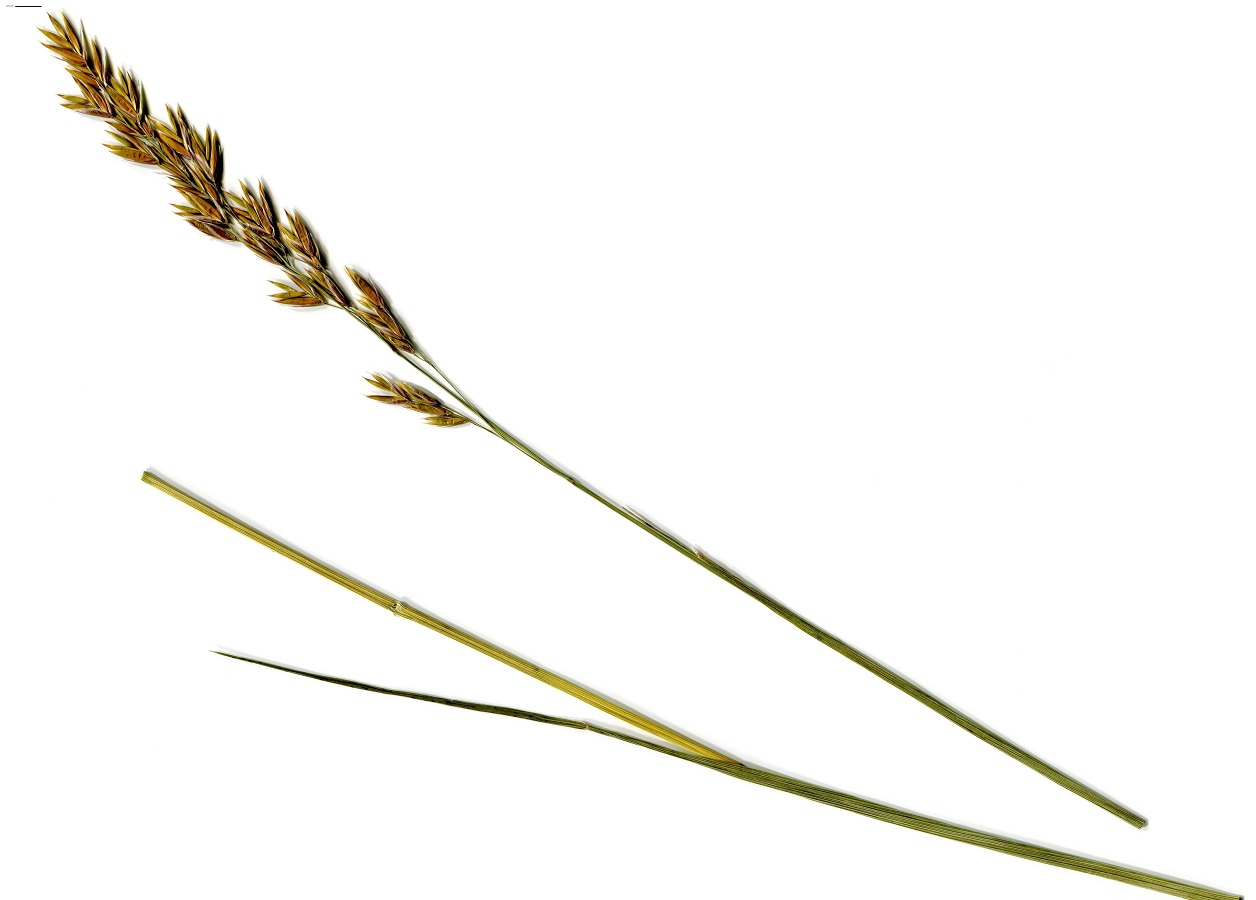Hc – 8-15 dm – Longues feuilles planes, rigides, glauques, à base bulbeuse – Panicule longue (L = 10-18 cm) assez lâche, à gros épillets de L ≃ 1,5 cm fauves, lemme inférieure de L ≥ 10 mm