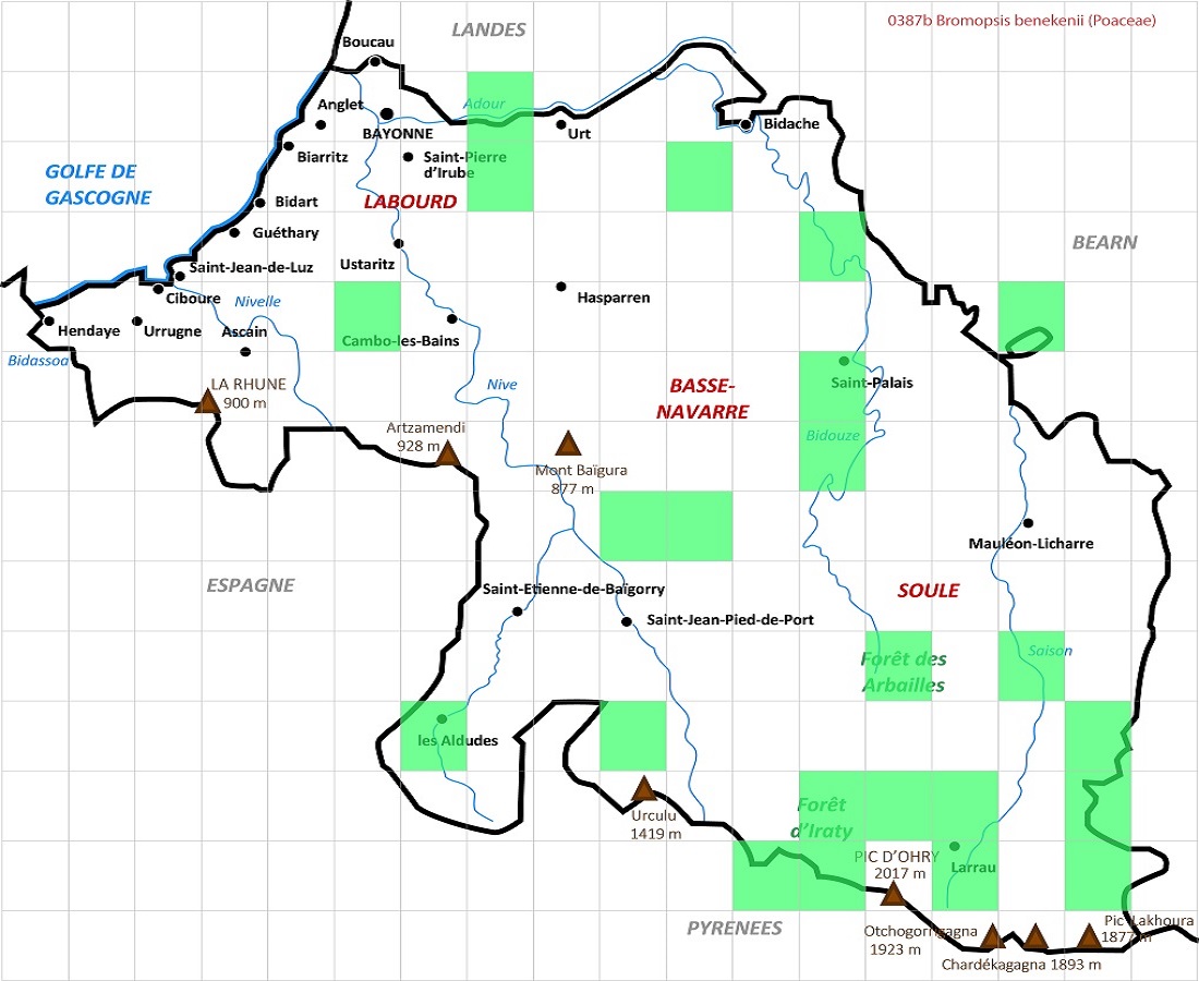 Nom Latin du taxon (Famille) Bromopsis benekenii (Poaceae) - Synonymes Latins – (Syn. Bromus benekenii ; B. ramosus subsp. benekenii) Nom Français du taxon Brome de Beneken - Autres Noms Français - nc Nom en Euskara nc - Autres Noms en Euskara - nc Identifiant 0387b