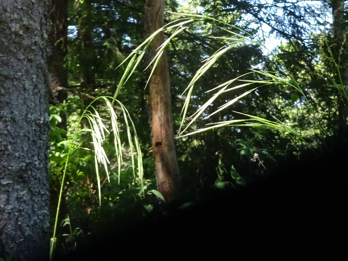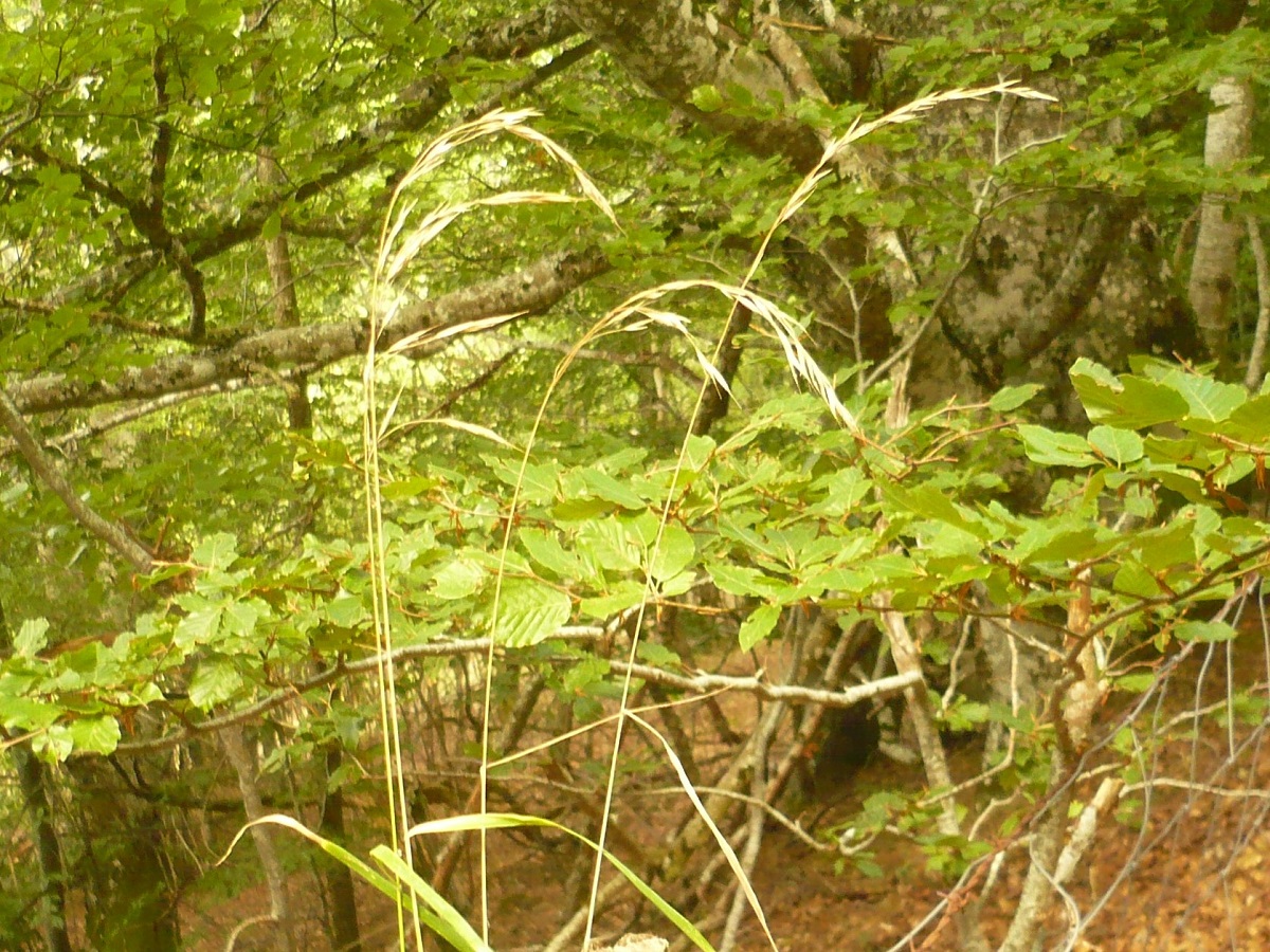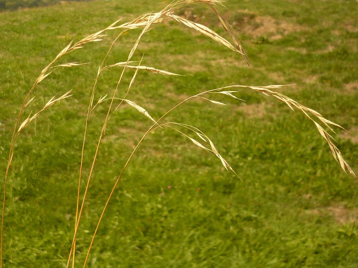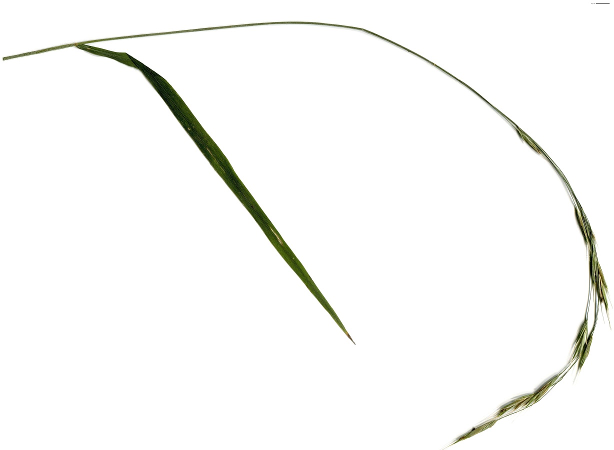 Hc – 6-12 dm – Feuilles, planes molles, et gaines velues (poils de L ≤ 2 mm), ligule ± longue aiguë – Panicule étroite peu fournie, penchée, épillets L de 1,5-3 cm, arête L de 5-8 mm