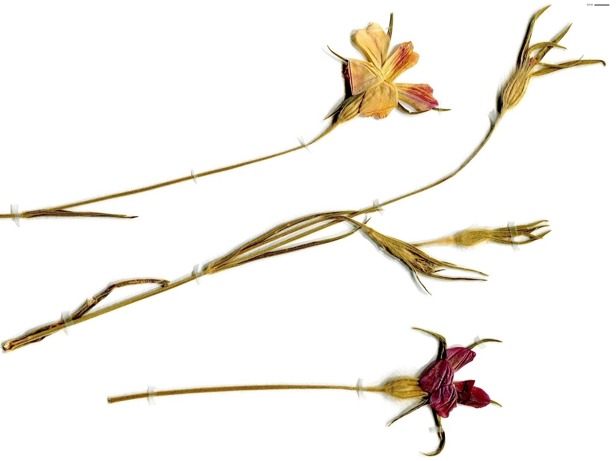 Th – 5-10 dm – Plante velue-soyeuse, feuilles opposées linéaires-aiguës – Fleurs à 5 pétales pourprés ± échancrés < aux sépales en tube à longs lobes aigus – Capsule à 5 dents