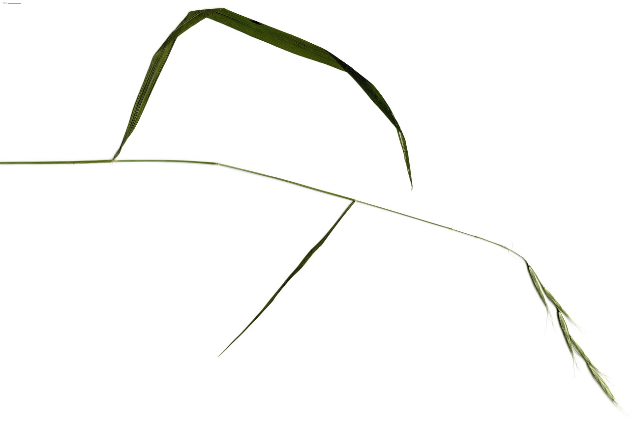 Hc – 5-10 dm – Gaines et feuilles molles, velues – Inflorescence arquée, 6-12 épillets de L 17-25 mm espacés, à court pédicelle, lemmes L de 7-12 mm velues à arête de 7-14 mm ± flexueuse