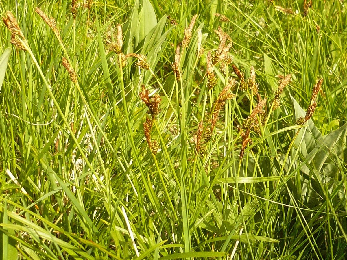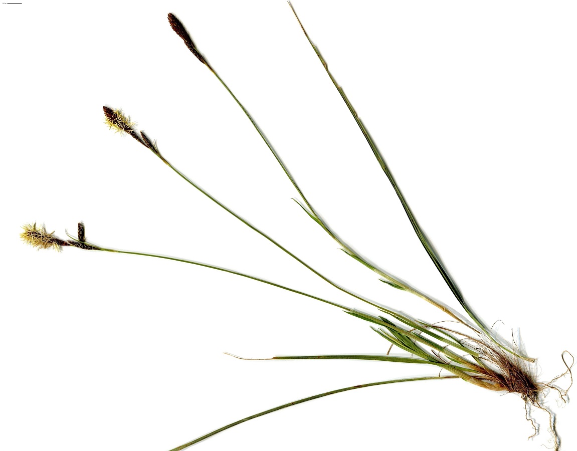 Hc – 2-4 dm – Feuilles longues – 1 Épi > ♂ assez long, brunâtre, 2-3 épis < ♀, plus petits, ± accolés, à écailles aiguës courtes, 3 stigmates – Utricules de L ≃ 3,5 mm velus, à bec court