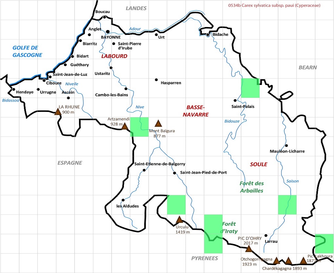 Nom Latin du taxon (Famille) Carex sylvatica subsp. paui (Cyperaceae) - Synonymes Latins – (Syn. Carex algeriensis ; C. paui) Nom Français du taxon Laîche d’Algérie - Autres Noms Français - nc Nom en Euskara nc - Autres Noms en Euskara - nc Identifiant 0534b