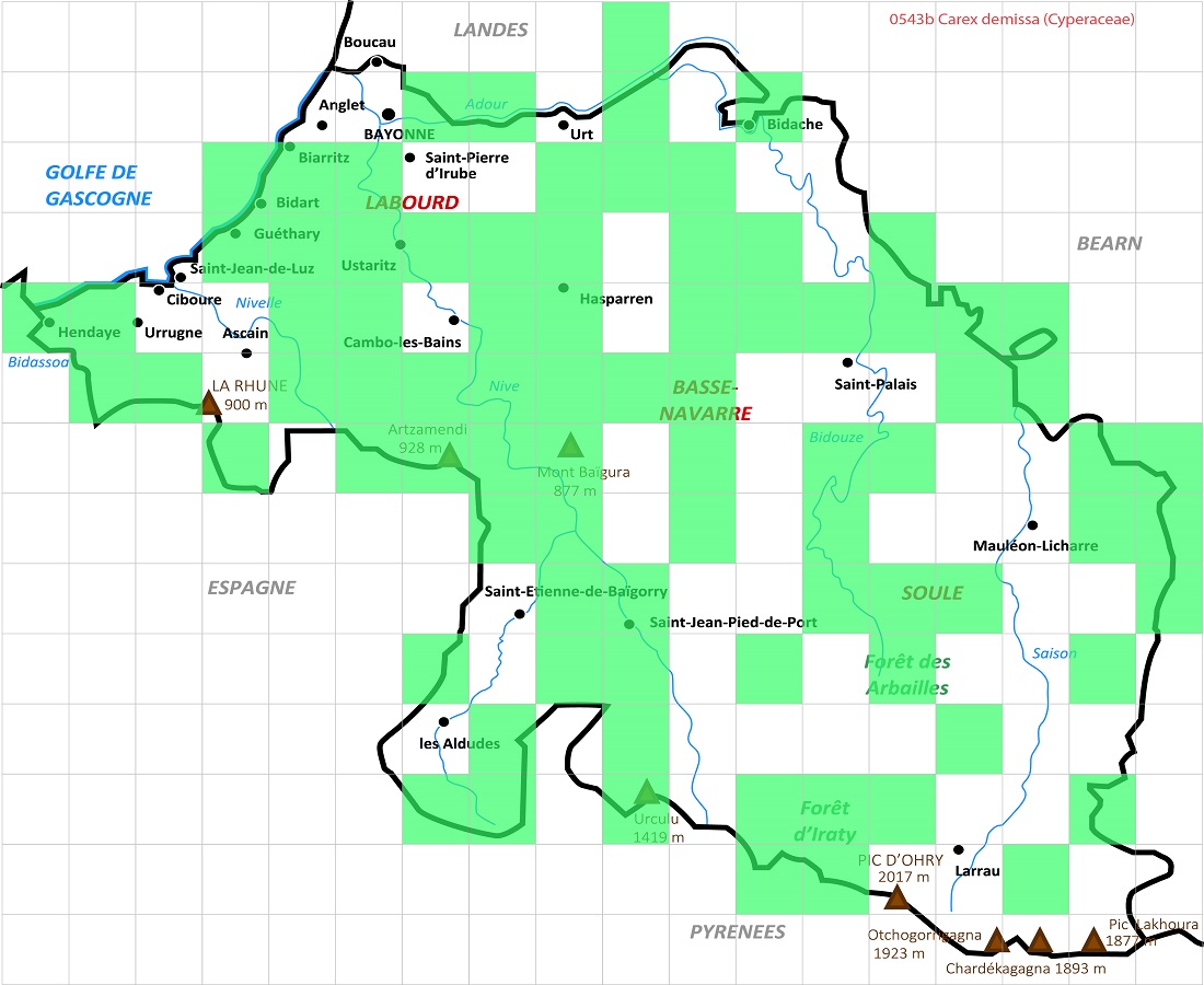 Nom Latin du taxon (Famille) Carex demissa (Cyperaceae) - Synonymes Latins – (Syn. Carex viridula subsp. oedocarpa) Nom Français du taxon Laîche à tige courte - Autres Noms Français - Laîche vert-jaunâtre Nom en Euskara nc - Autres Noms en Euskara - nc Identifiant 0543b