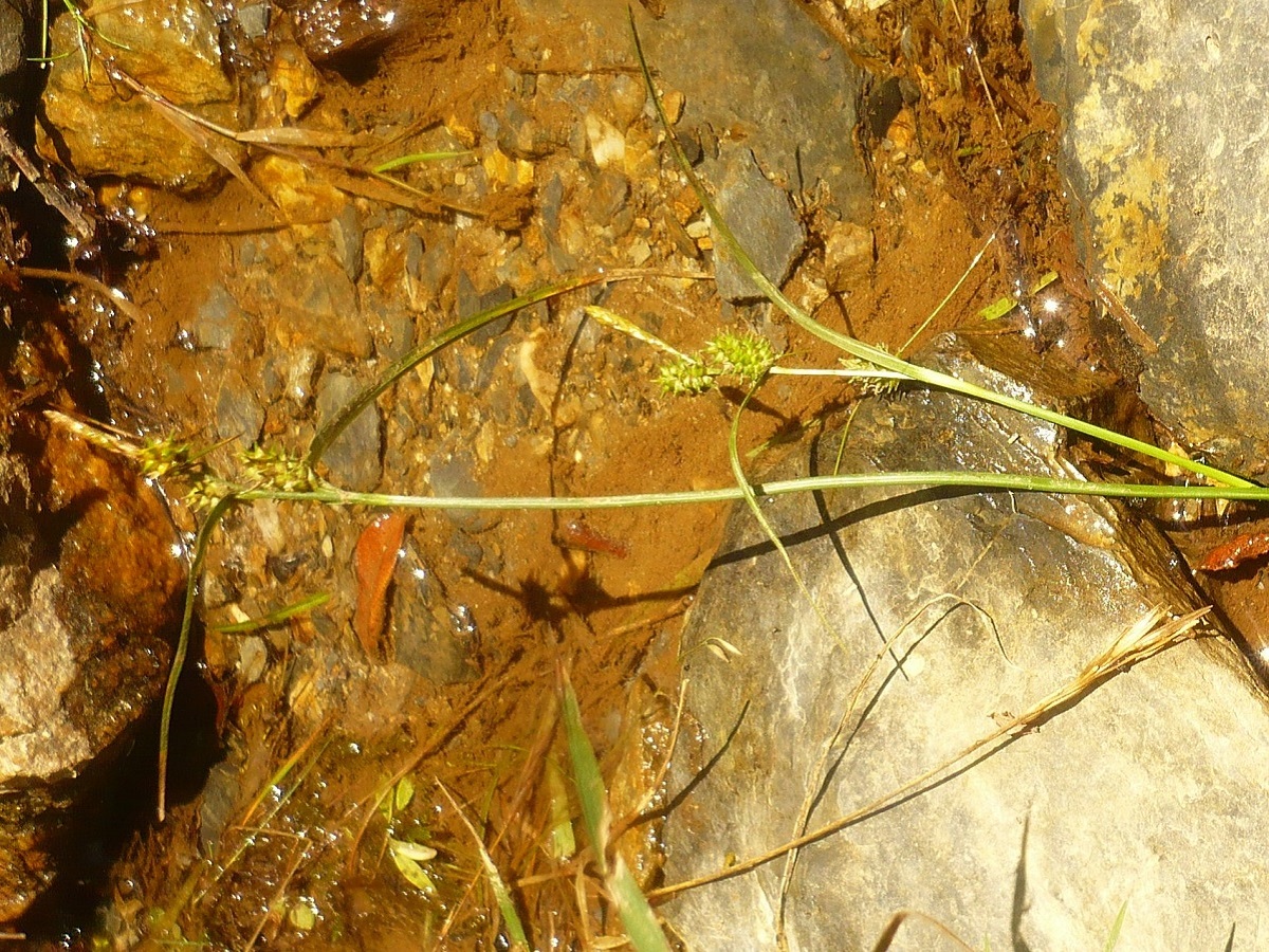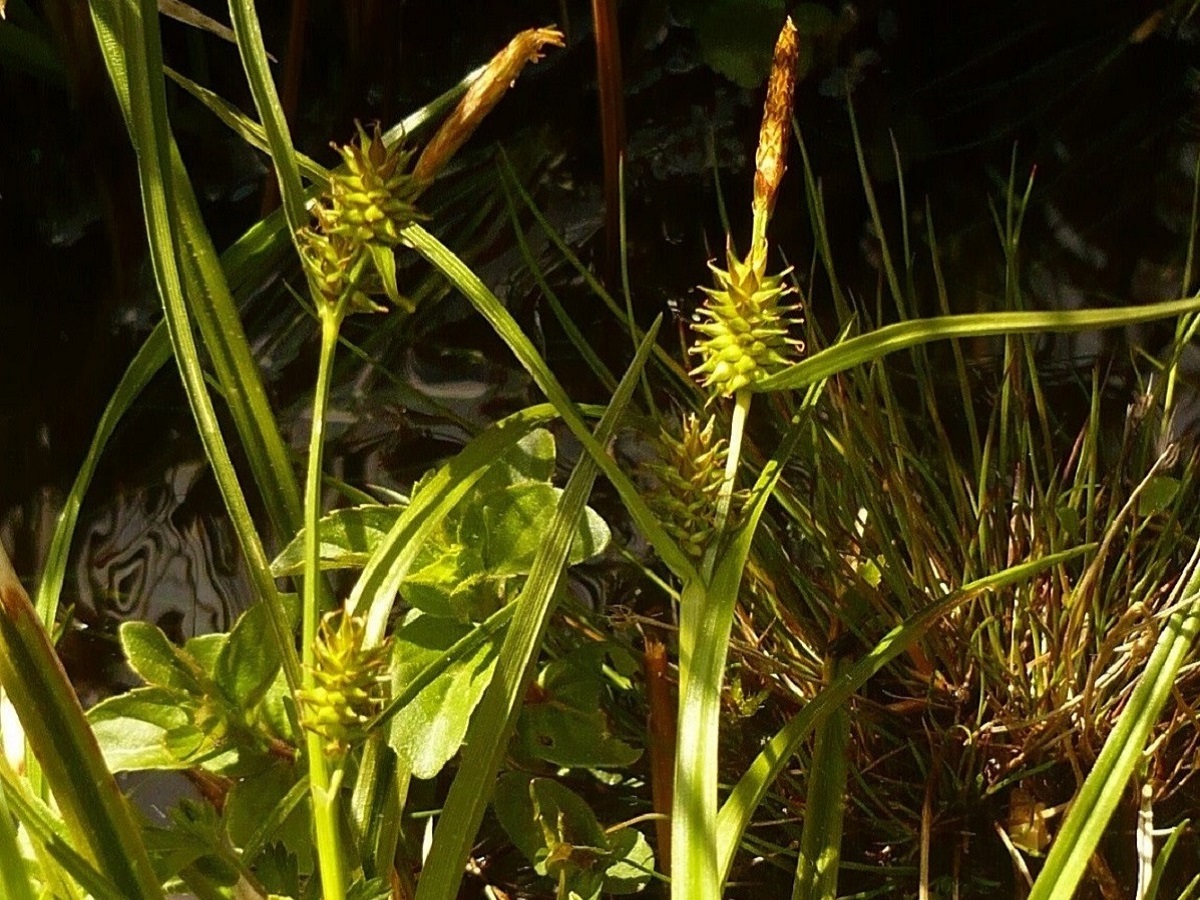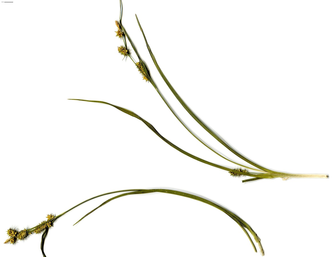 Hc – 1-4 dm – Feuilles larges de 1-4 mm – 1 Épi > ♂ jaune cylindrique fin, ± pédonculé, 2-3 épis < ♀ ovoïdes, l’< très distant, pédonculé, 3 stigmates – Utricules L de 3-4 mm, à bec droit