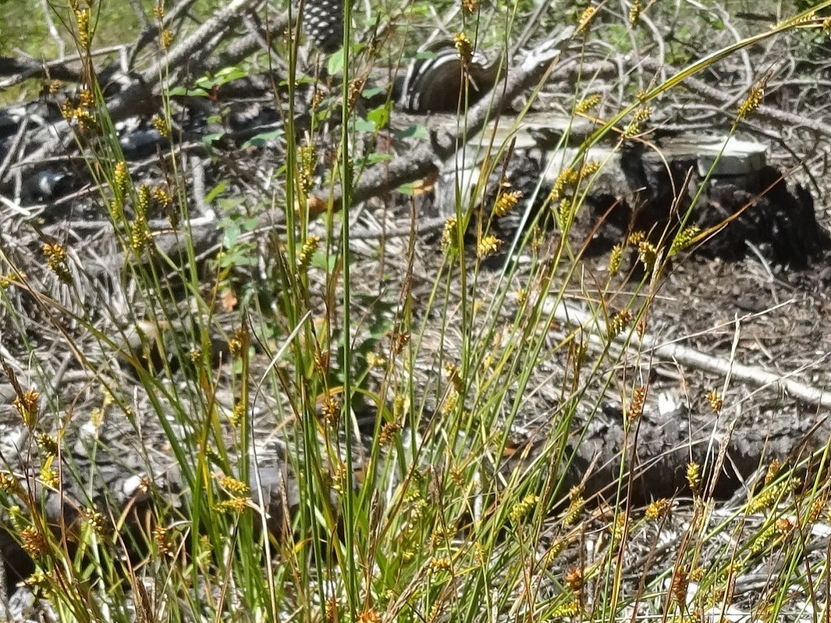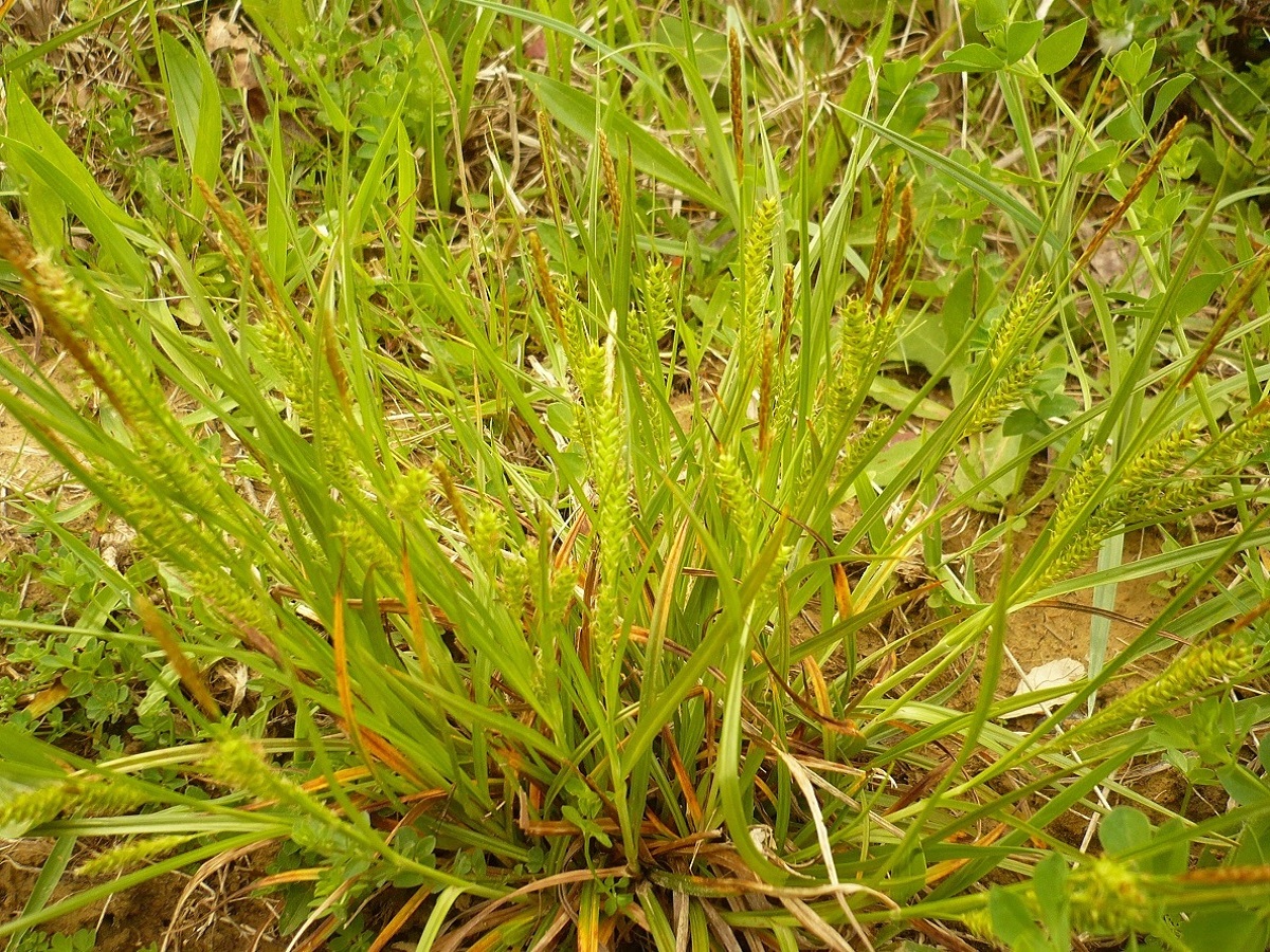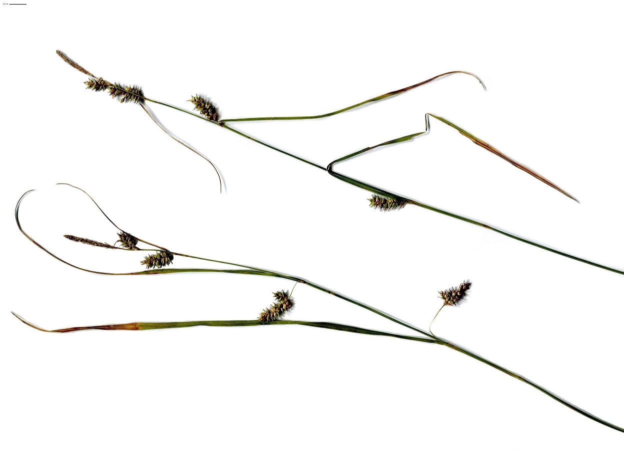 Hc – 2-6 dm – 1 Épi > ♂ grêle et 2-4 épis < ♀, distants, finement pédonculés, 3 stigmates, bractée < longue – Utricules de L ≃ 3,5 mm étalés, lisses, brillants, vert-jaune ponctués de brun