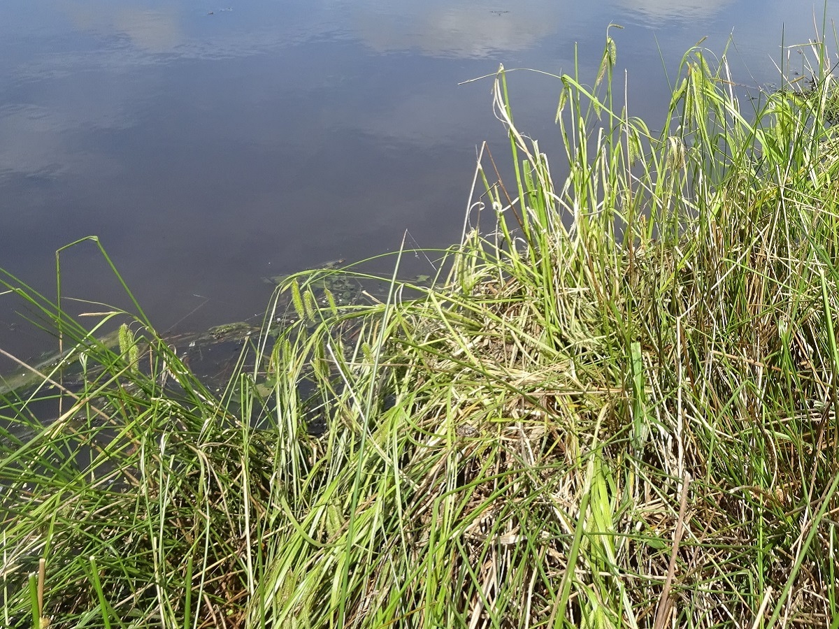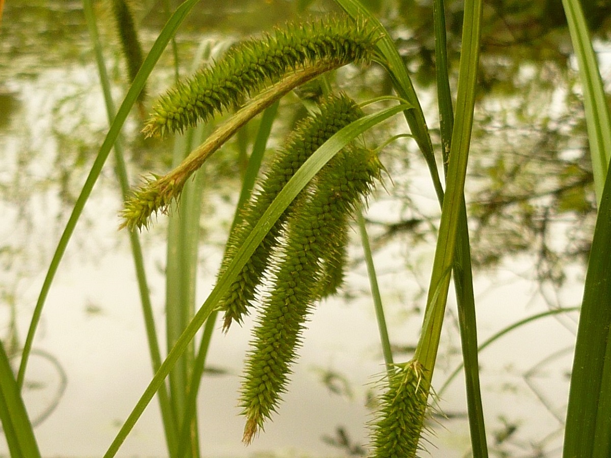Hc – 5-10 dm – Port robuste, feuilles larges – 1-2 Épis > ♂ fins, 3-5 gros épis < ♀ rapprochés ± pendants, 3 stigmates, bractée < longue – Utricules de L ≃ 5 mm nervés, à long bec bifide