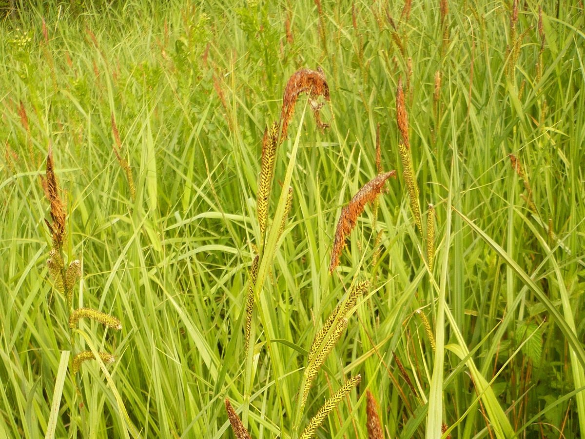 G à rhizome – 5-15 dm – Feuilles longues – 2-3 Épis > ♂ fusiformes marron, écailles obtuses, 3-4 épis < ♀ longs brun foncé, 3 stigmates – Utricule de L ≃ 5 mm ovoïde ± aplati, à bec court
