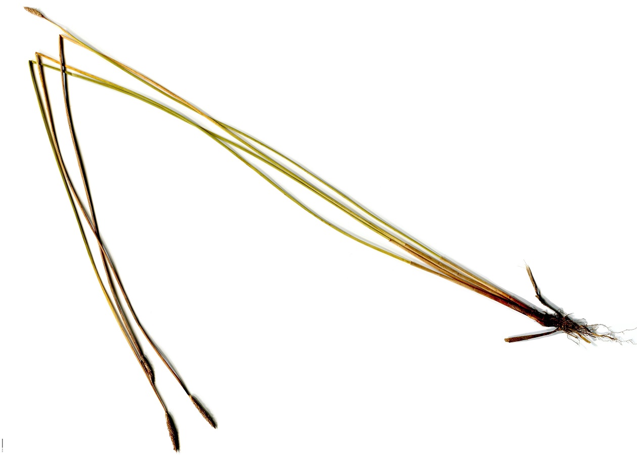 G à rhizome – 3-6 dm – Tige très effilée, gaine brun-rouge – Épis bruns fins de L ≃ 1 cm, 10-30 fleurs, à 1 grande écaille basale, 2 stigmates – Akène de L > 1,2 mm à mamelon , 0-4 soies