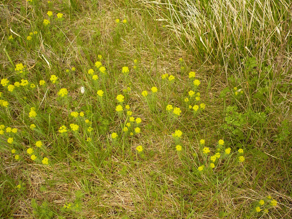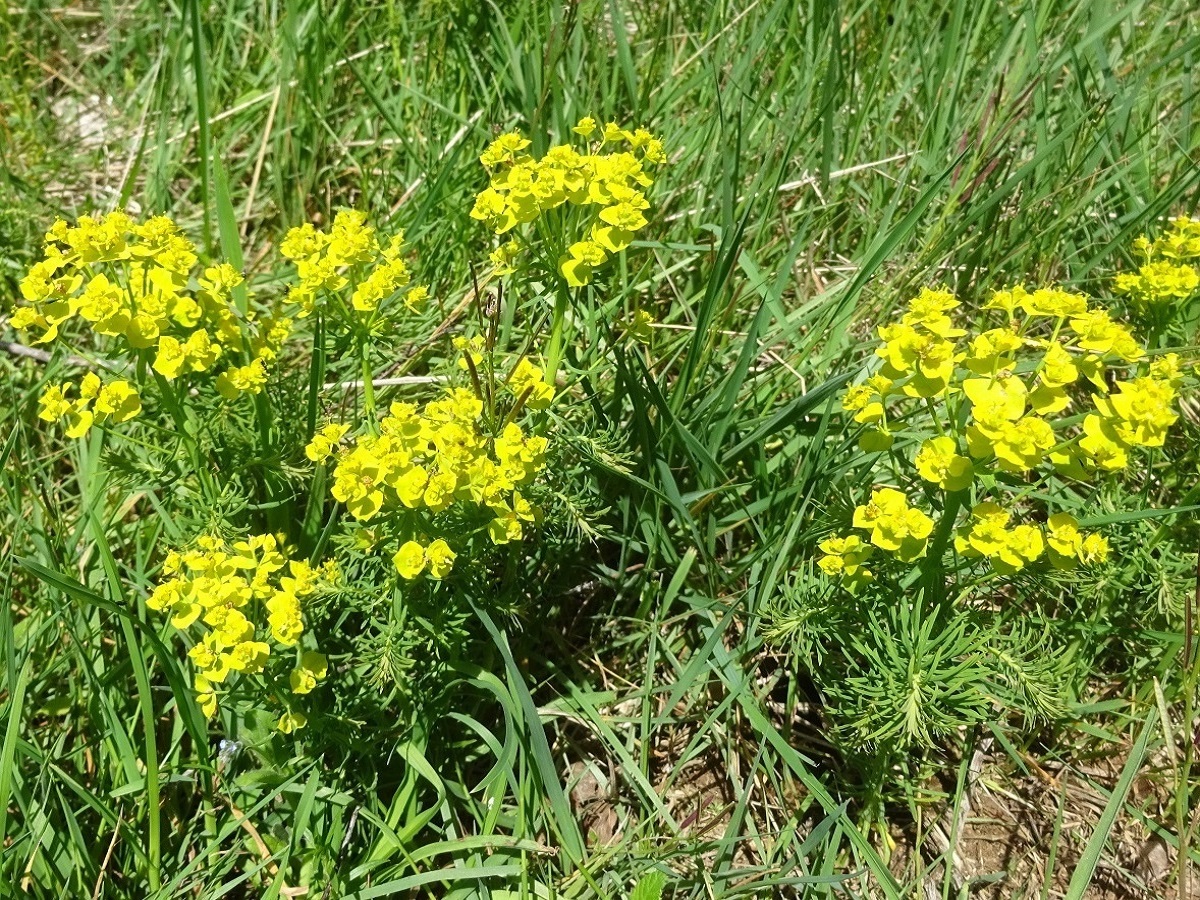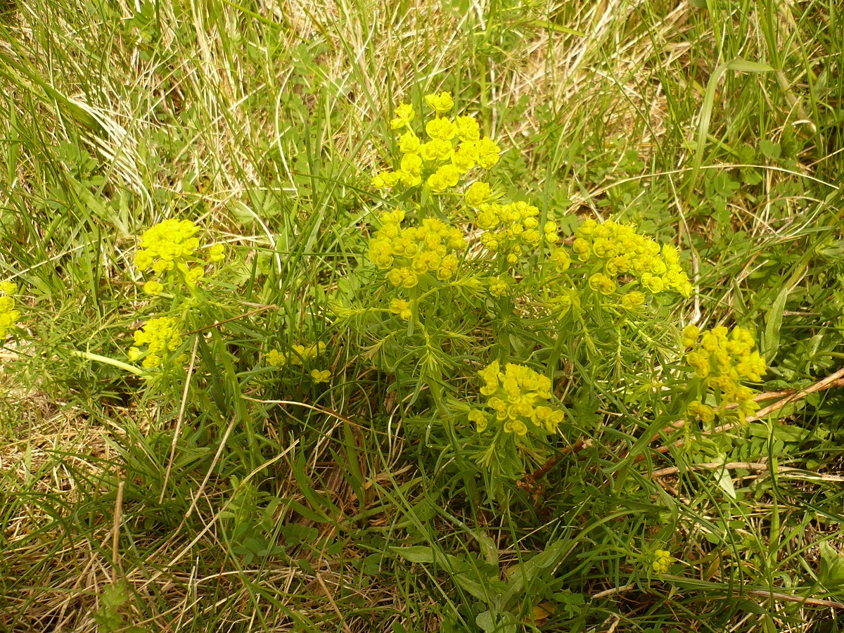 G à drageons/Hc – 2-4 dm – Tiges ± ramifiées, feuilles linéaires nombreuses – Ombelle à 10-20 rayons, nectaires en croissant jaune, bractées ovales-aiguës – Capsule chagrinée, graines lisses