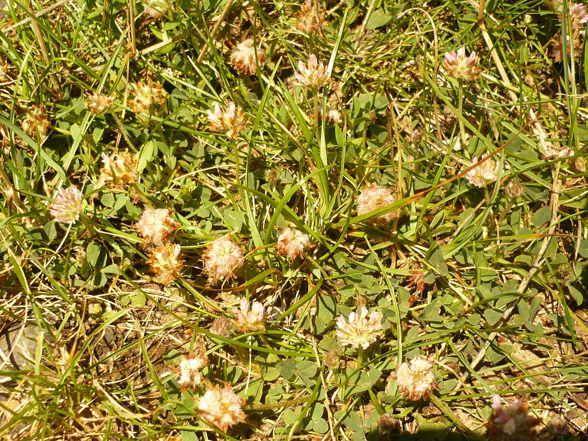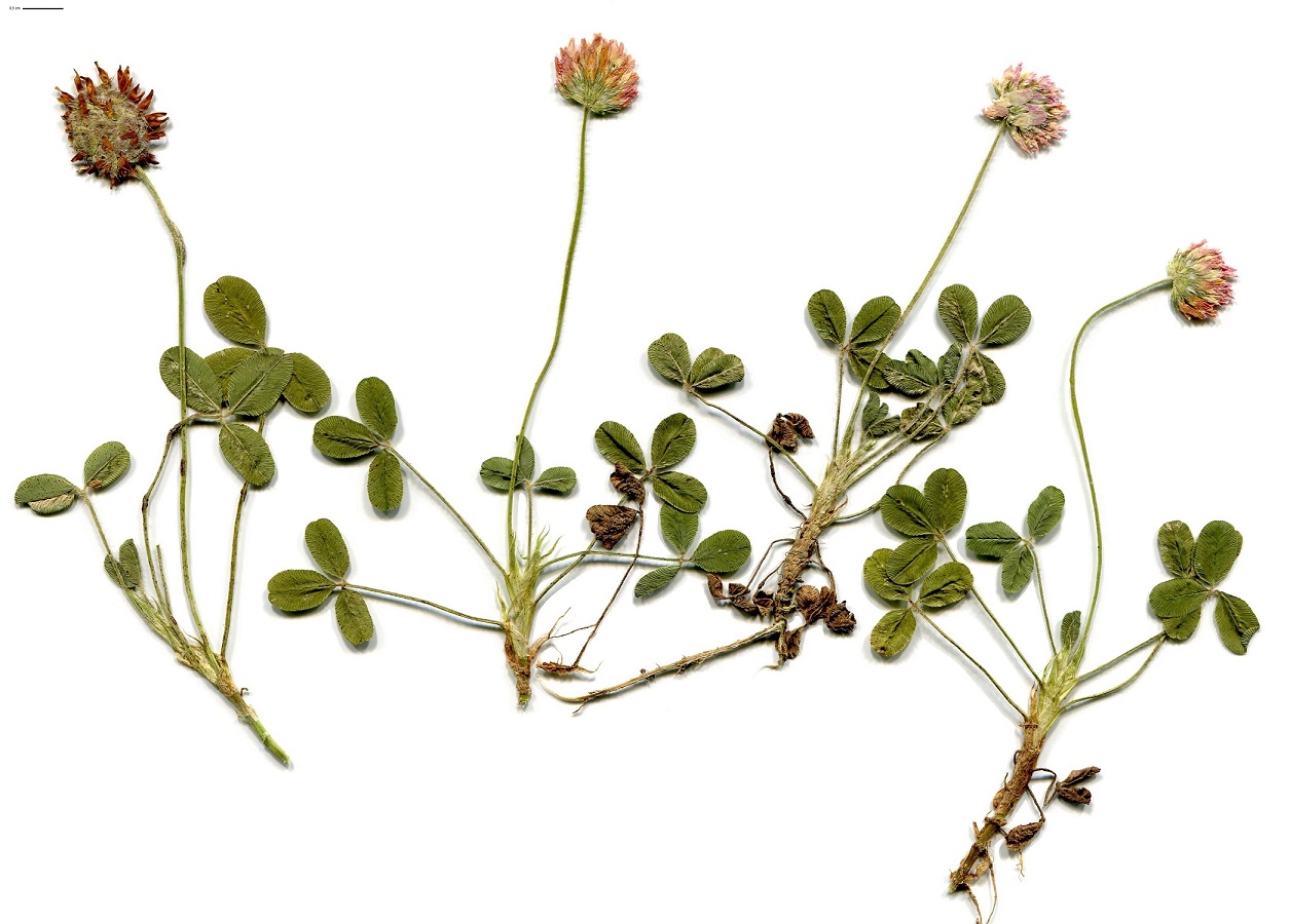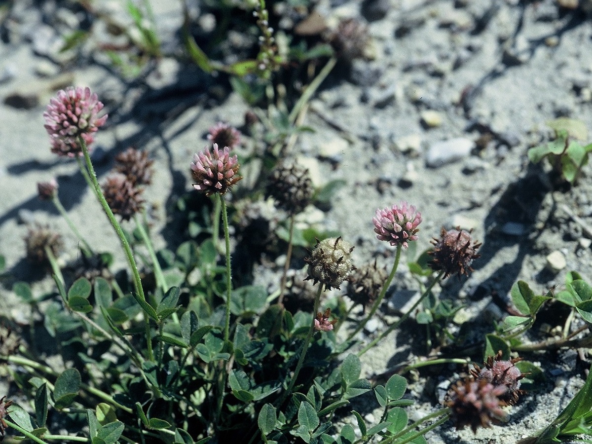 Hc – 1-3 dm – Folioles de L 8-20 mm elliptiques, stipules lancéolées – Fleurs rose pâle en tête de Ø 10-14 mm, corolle L de 6-7 mm – Calice velu devenant vésiculeux en fruit