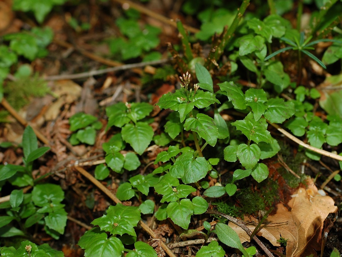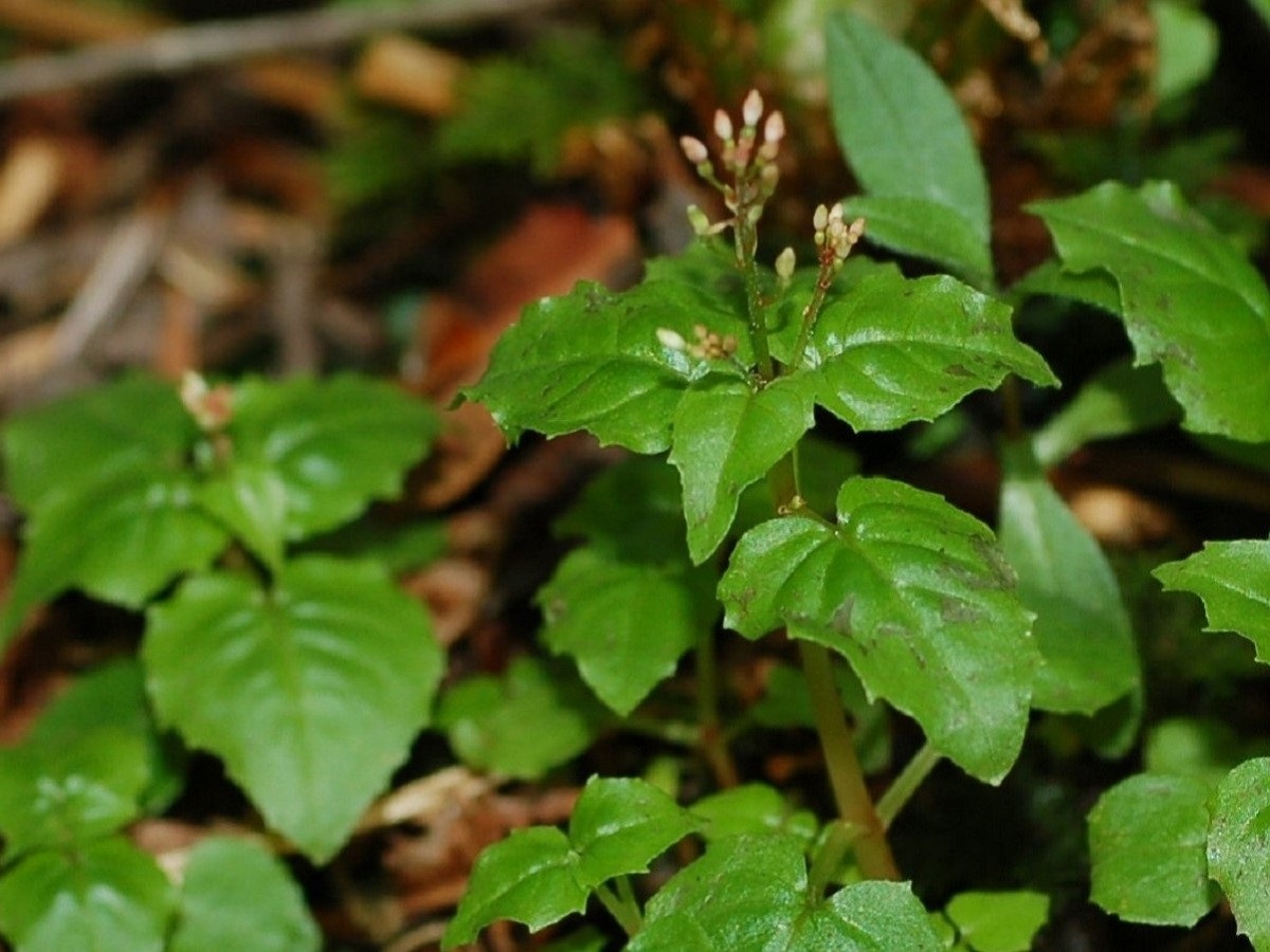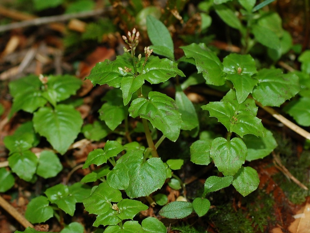 G à rhizome – 0,5-1,5 dm – Feuilles petites opposées ovales acuminées, cordées, dentées, à pétiole à peu près glabre – Fleurs à 2 pétales de L ≃ 1 mm blanc rosé – Capsule en massue