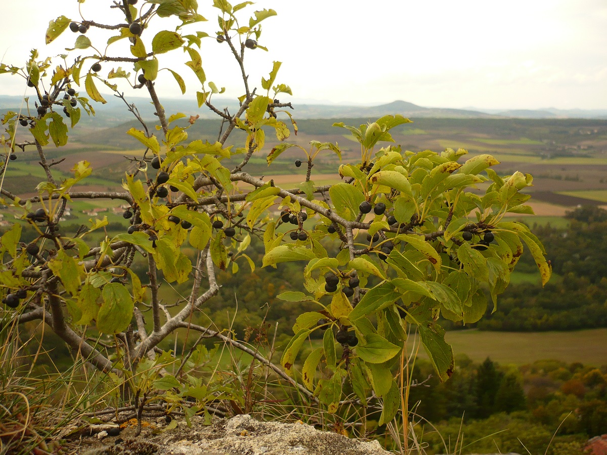 NPh – 2-5 m – Rameaux épineux, feuilles L de 3-7 cm ovales crénelées dentées, à nervures saillantes – Fleurs axillaires, calice à 4 lobes verdâtres – Fruit sphérique de Ø 6-8 mm noir