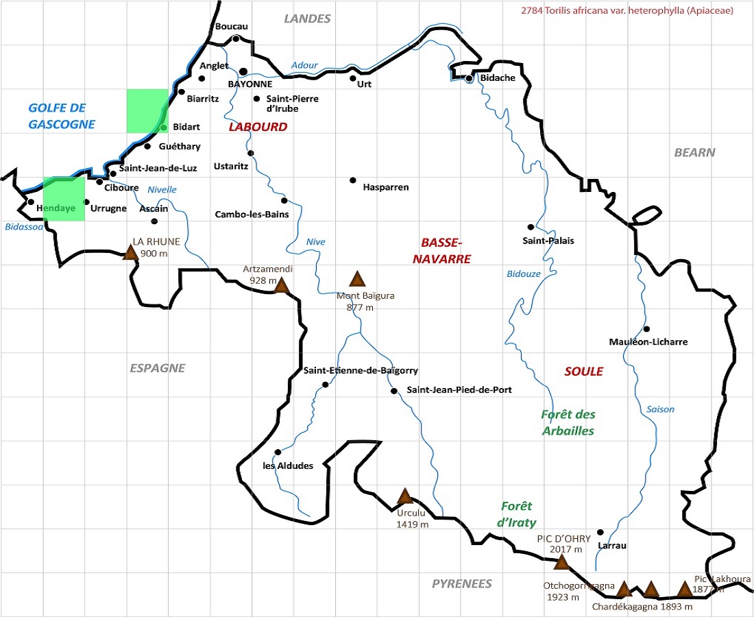 Th – 3-6 dm – Feuilles < 2-pennées, les > à 3 folioles linéaires lancéolées – Ombelles à 2-4 rayons de fleurs ± rosées – Fruit ovoïde L de 3-6 mm ± couvert d’aiguillons droits longs
