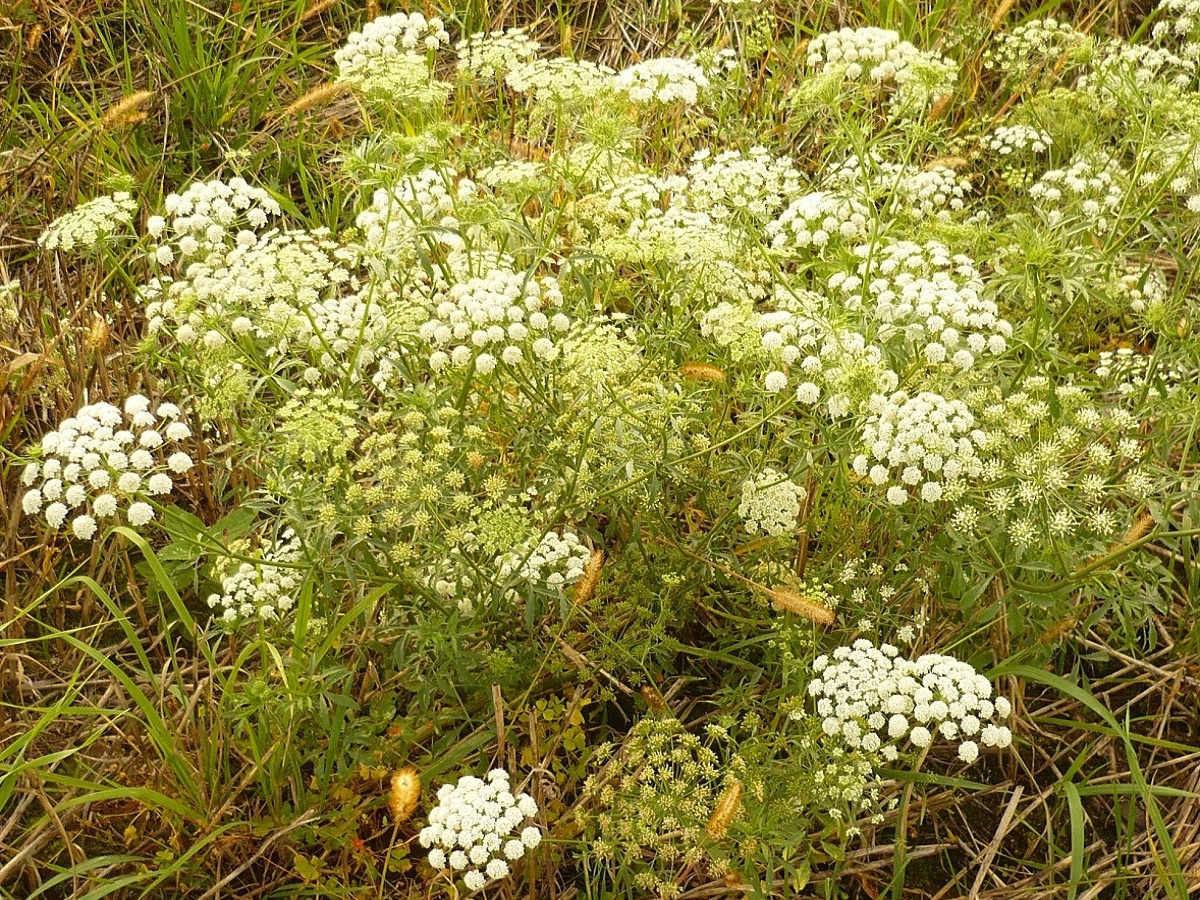 Hc – 6-12 dm – Racine orange, lobes pétiolulés lancéolés, incisés-dentés – Ombelle convexe à 15-30 rayons, fleurs blanches, bractées trifides – Fruit de L > 4 mm à longues épines