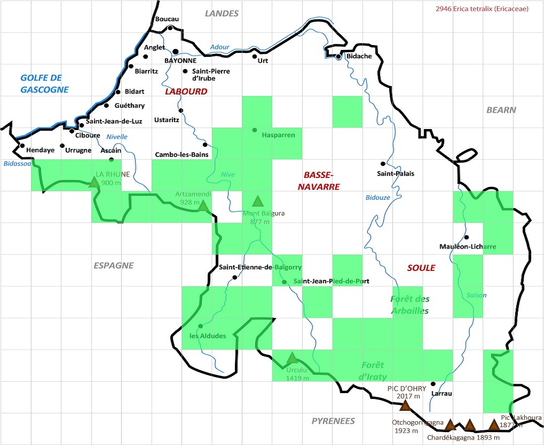 Nom Latin du taxon (Famille) Erica tetralix (Ericaceae) - Synonymes Latins - nc Nom Français du taxon Bruyère des marais - Autres Noms Français - Bruyère tétragone Nom en Euskara Txilar lauhostoa - Autres Noms en Euskara - nc Identifiant 2946