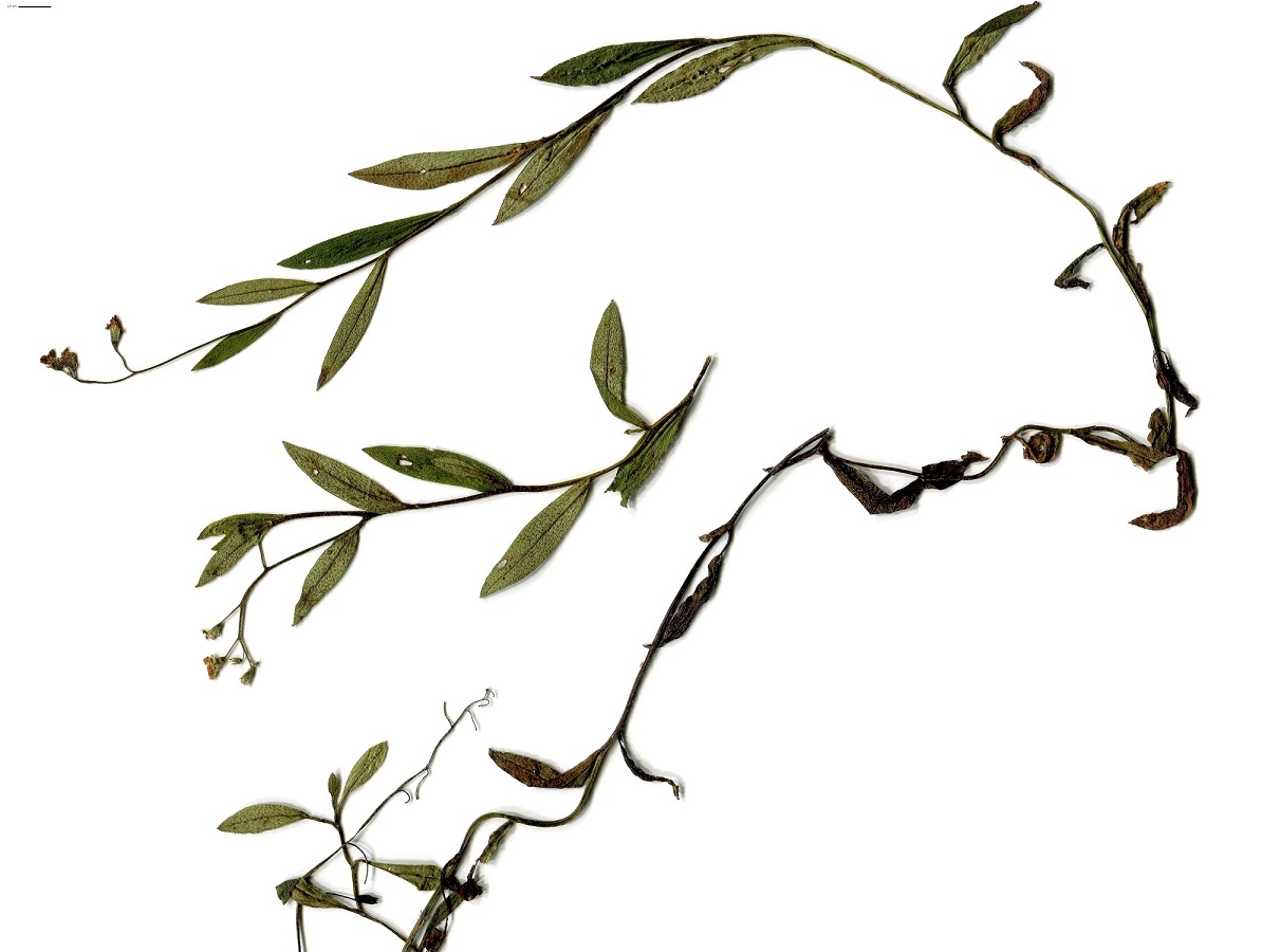Th/Hc – 2-5 dm – Tige anguleuse, feuilles L de 3-6 cm oblongues, face < à poils rétrorses – 2 Cymes nues, corolle de Ø → 6 mm bleu pâle, poils apprimés sur le calice – Nucules de L ≃ 1,8 mm
