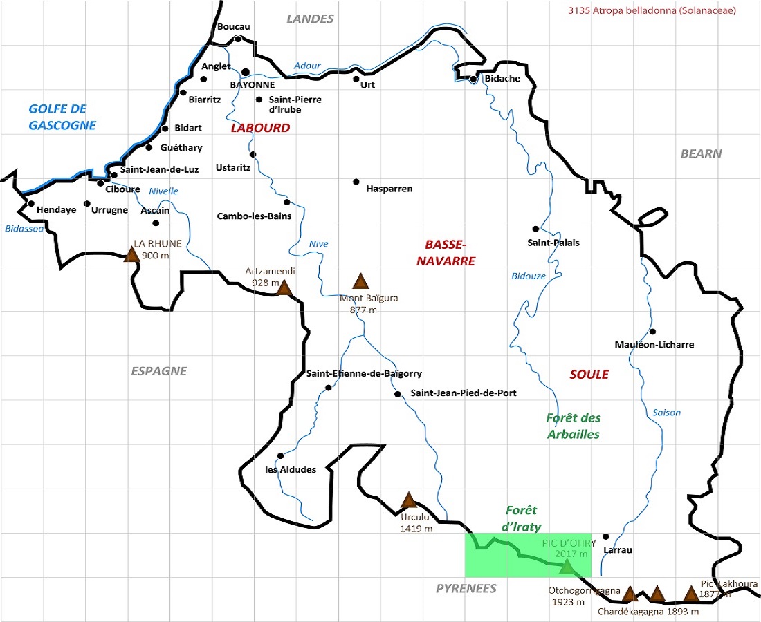 Hc – 5-15 dm – Feuilles grandes ovales acuminées entières, pétiolées – Fleur pourpre terne L de 2-4 cm en cloche à 5 lobes courts aigus – Baie noire luisante de Ø ≃ 2 cm à calice accrescent