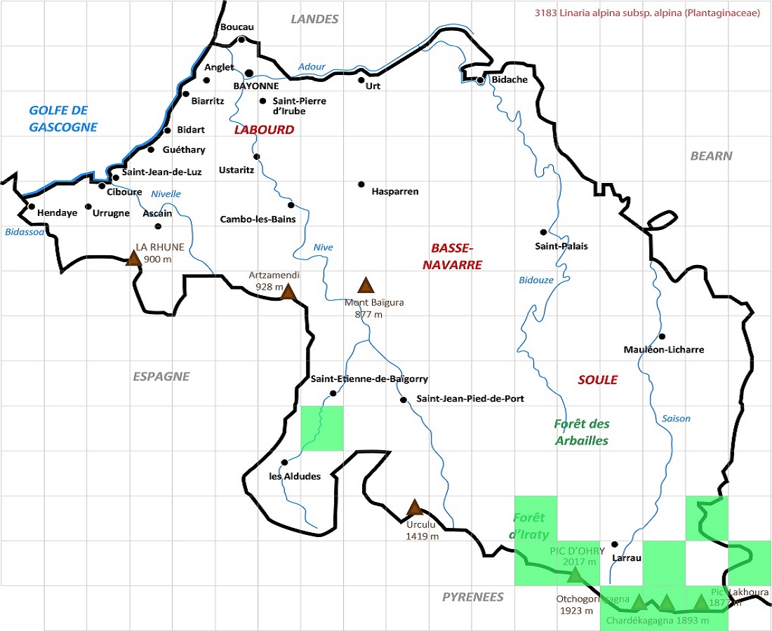 Nom Latin du taxon (Famille) Linaria alpina subsp. alpina (Plantaginaceae) - Synonymes Latins - nc Nom Français du taxon Linaire des Alpes - Autres Noms Français - nc Nom en Euskara nc - Autres Noms en Euskara - nc Identifiant 3183