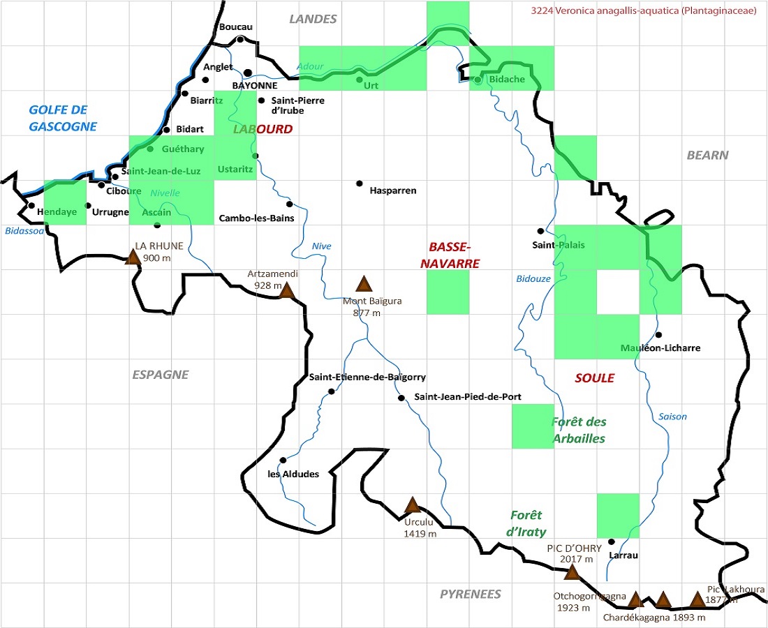 Hydr Hc – 2-6 dm – Tige creuse, feuilles > aiguës ± amplexicaules, opposées, les < pétiolées – Grappes de fleurs de Ø 4-8 mm bleues, pédicelles ascendants – Capsule arrondie