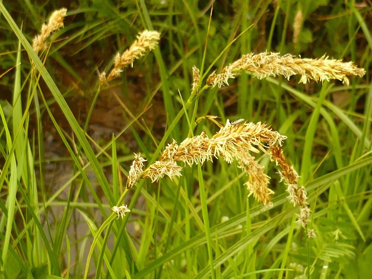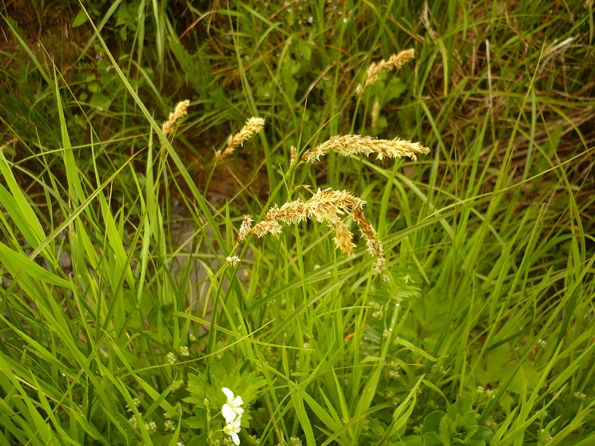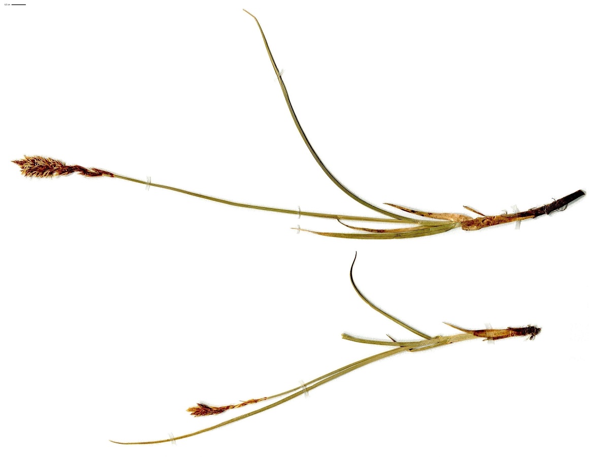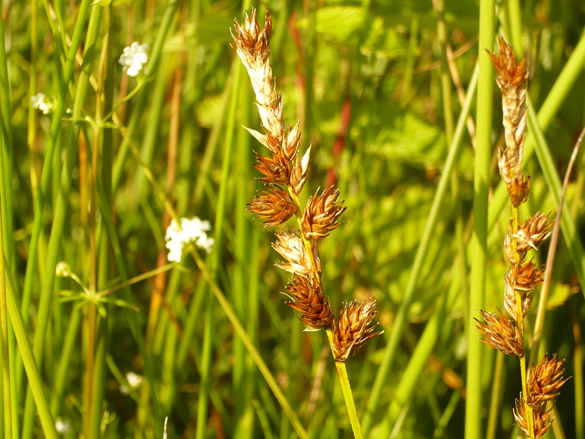 G à rhizome – 3-6 dm – Tige feuillée jusqu’au milieu – Inflorescence roussâtre de L 3-7cm à 15-30 épis ovoïdes ± contigus ♂ et ♀ (2 stigmates) – Utricules L de 4 mm à aile étroite