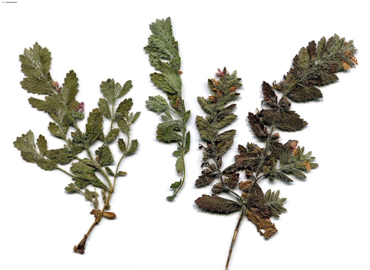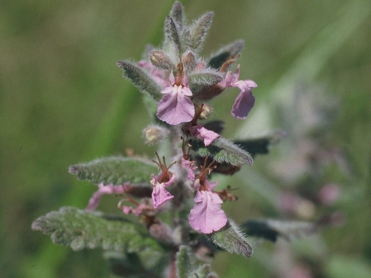 Ch – 1-2 dm – Stolonifère, feuilles L de 2-3 cm très velues oblongues crénelées, sessiles opposées – Fleurs étagées par 2-4, corolle de L 7-9 mm pourprée à lobe < obovale large, calice bossu