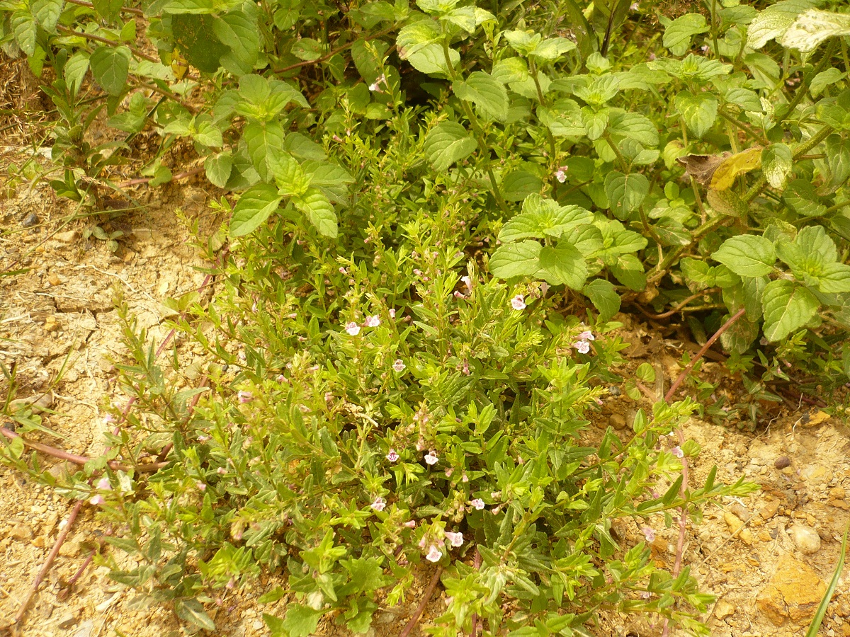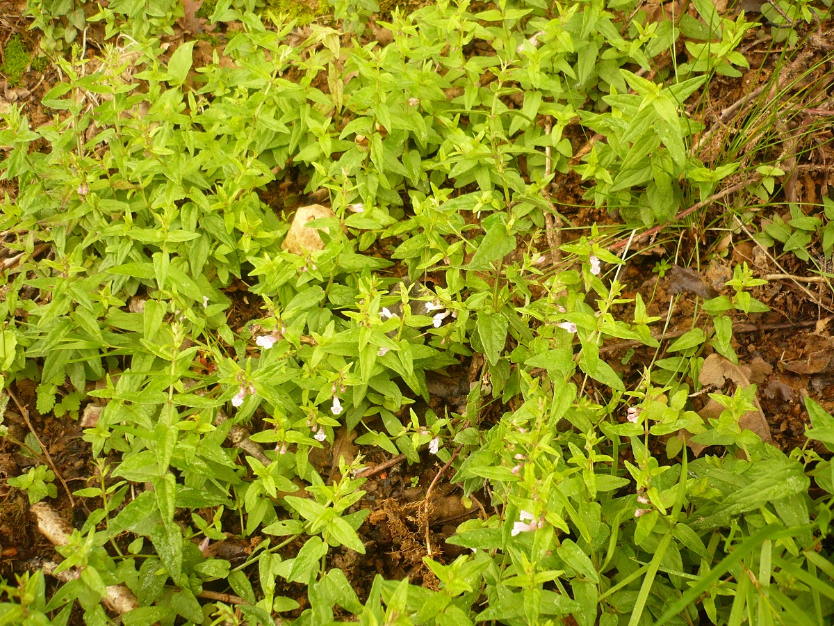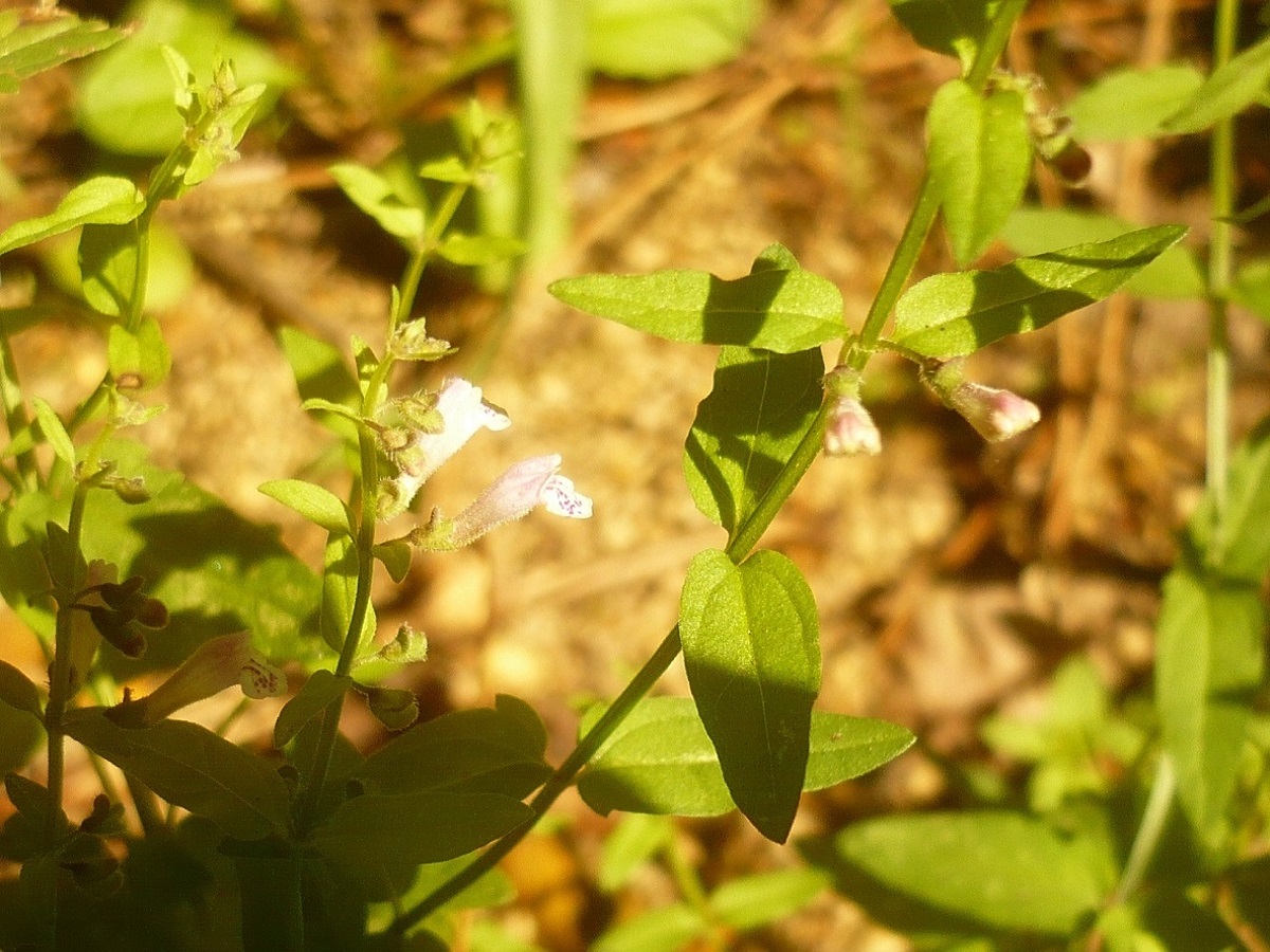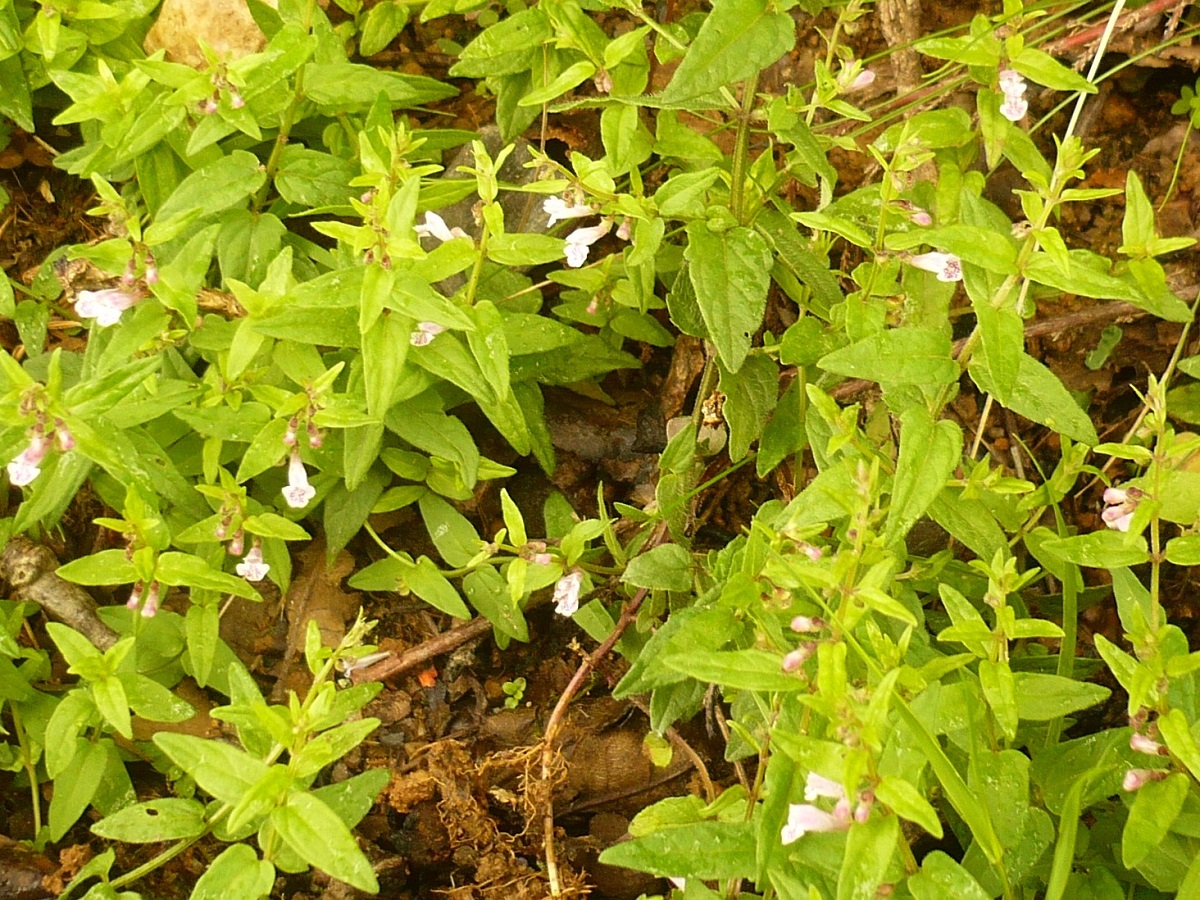 Hc – 0,5-2,5 dm – Grêle, feuilles L de 2-3 cm opposées étroites triangulaires ± cordées, à court pétiole – Fleurs petites géminées unilatérales, corolle rosée en tube droit évasé L de 6-8 mm