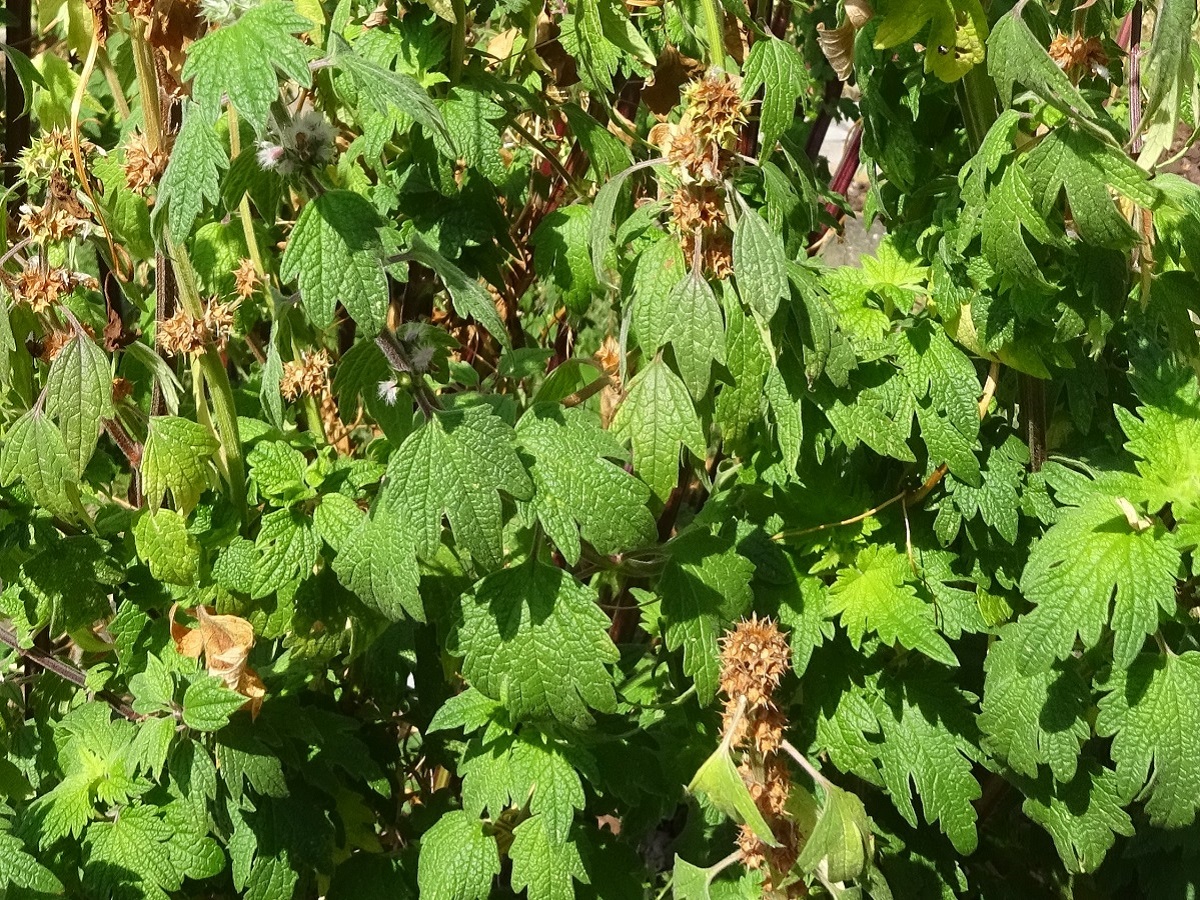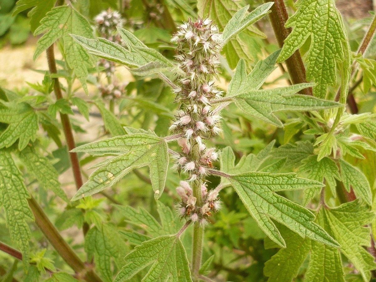 Hc – 0,5-1 m – Feuilles L de 3-8 cm à 5-7 lobes incisés dentés, pétiolées, les > trifides – Verticillastres denses, corolle ± rose L de 8-12 mm, lèvre > très velue, calice fortement aristé