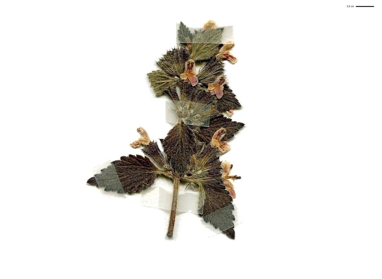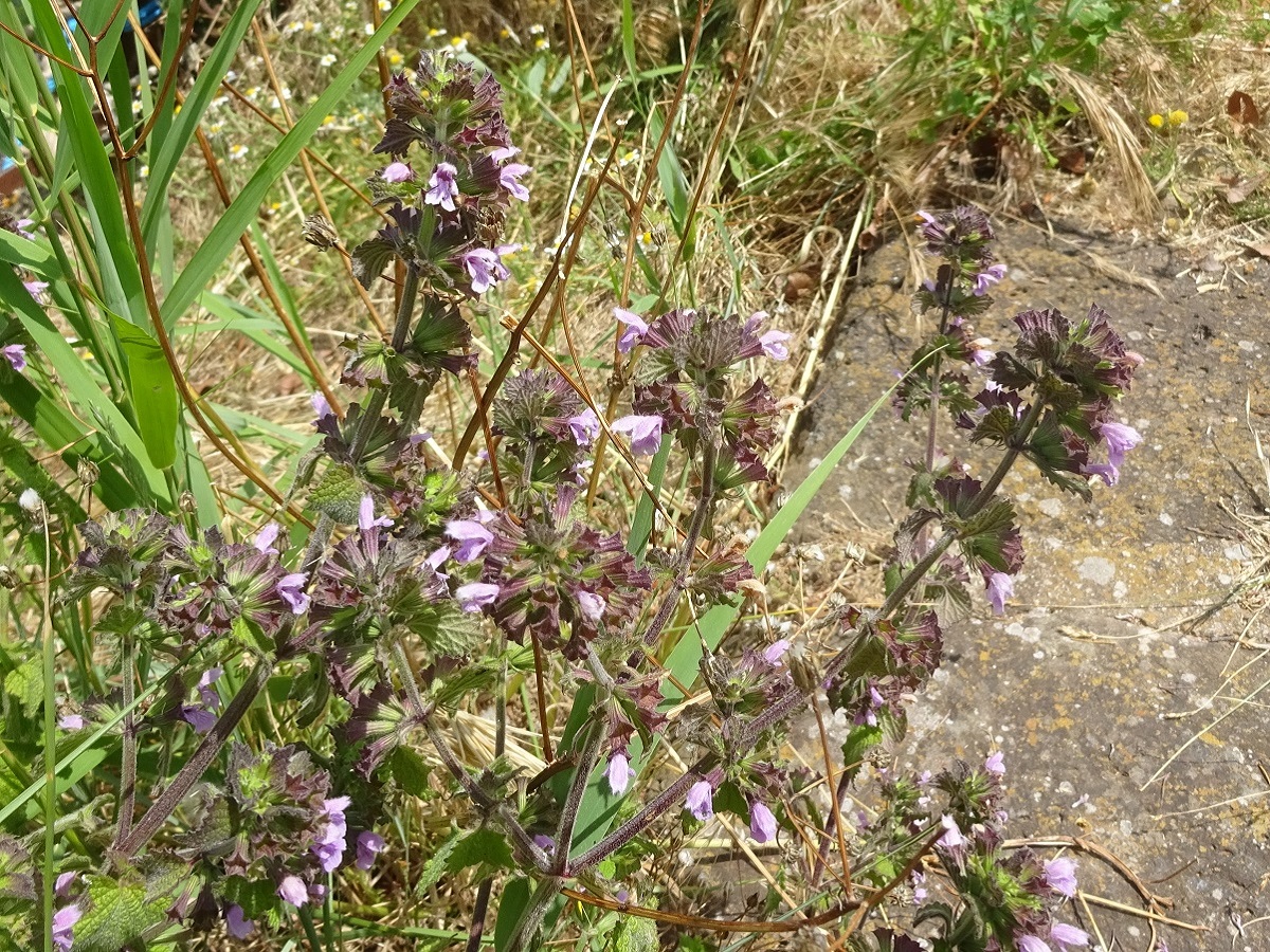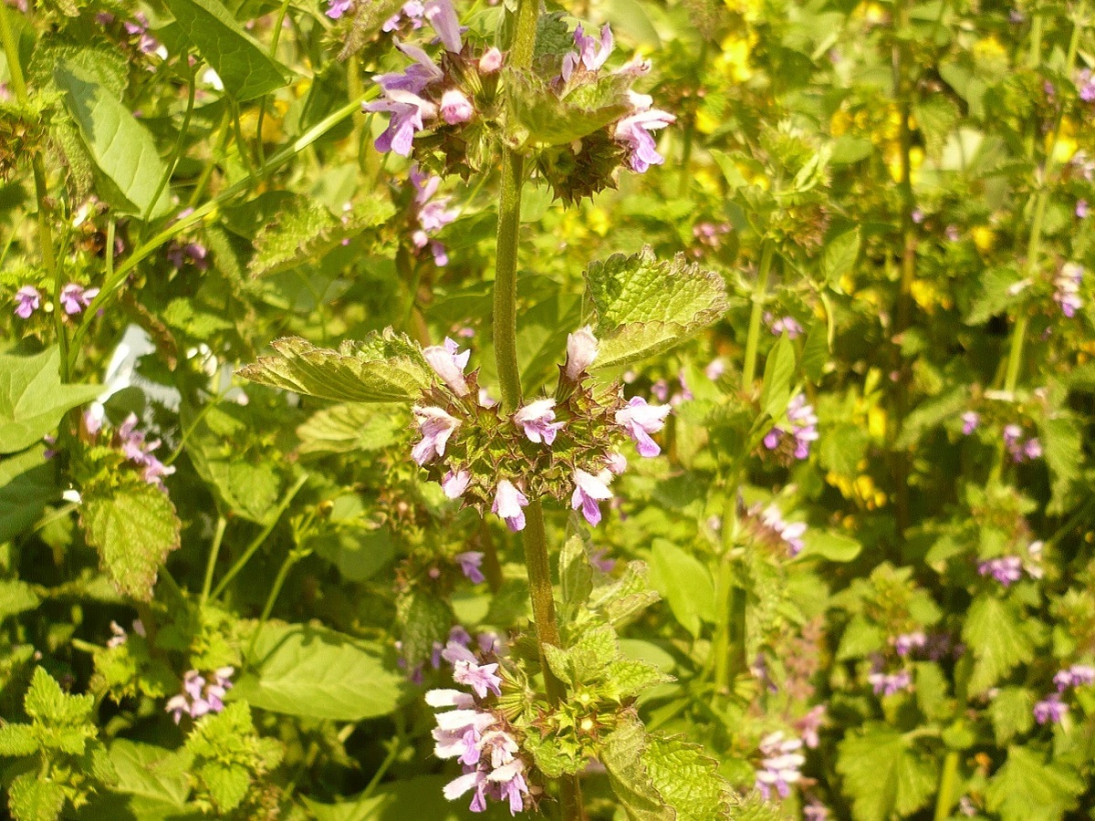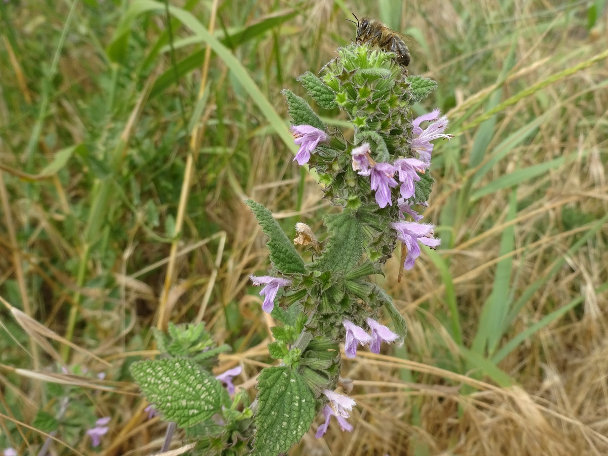 Hc – 3-6 dm – Feuilles L de 3-8 cm ovales crénelées, pétiolées – Verticillastres denses ± distants, corolle bilabiée pourpre rosé de L 1-1,5 cm, calice souvent foncé à arêtes de L < 1,5 mm