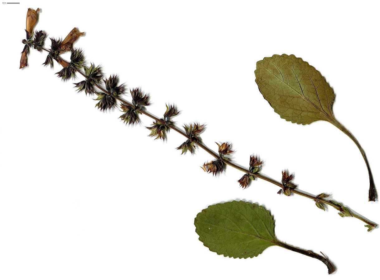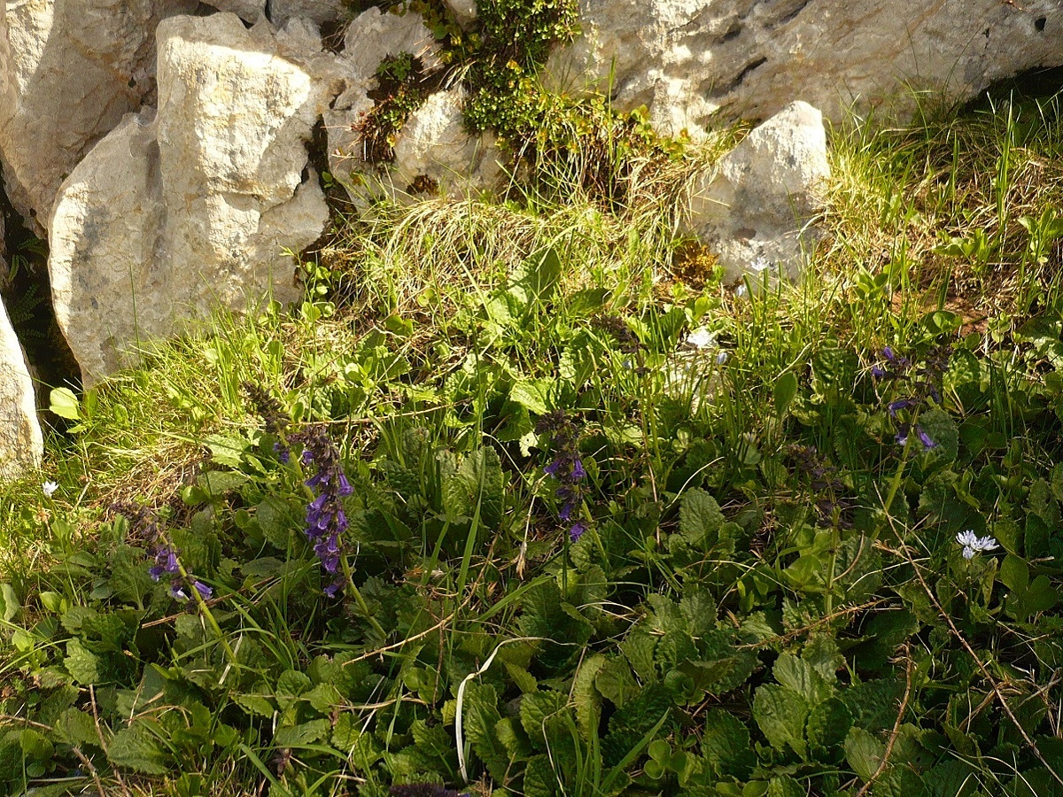 Hc – 1-3 dm – Feuilles de L 3-6 cm ovales oblongues, gaufrées, crénelées, pétiolées – Fleurs étagées par 4-6, corolle L de 1,5-2 cm violette bilabiée à tube saillant >> au calice