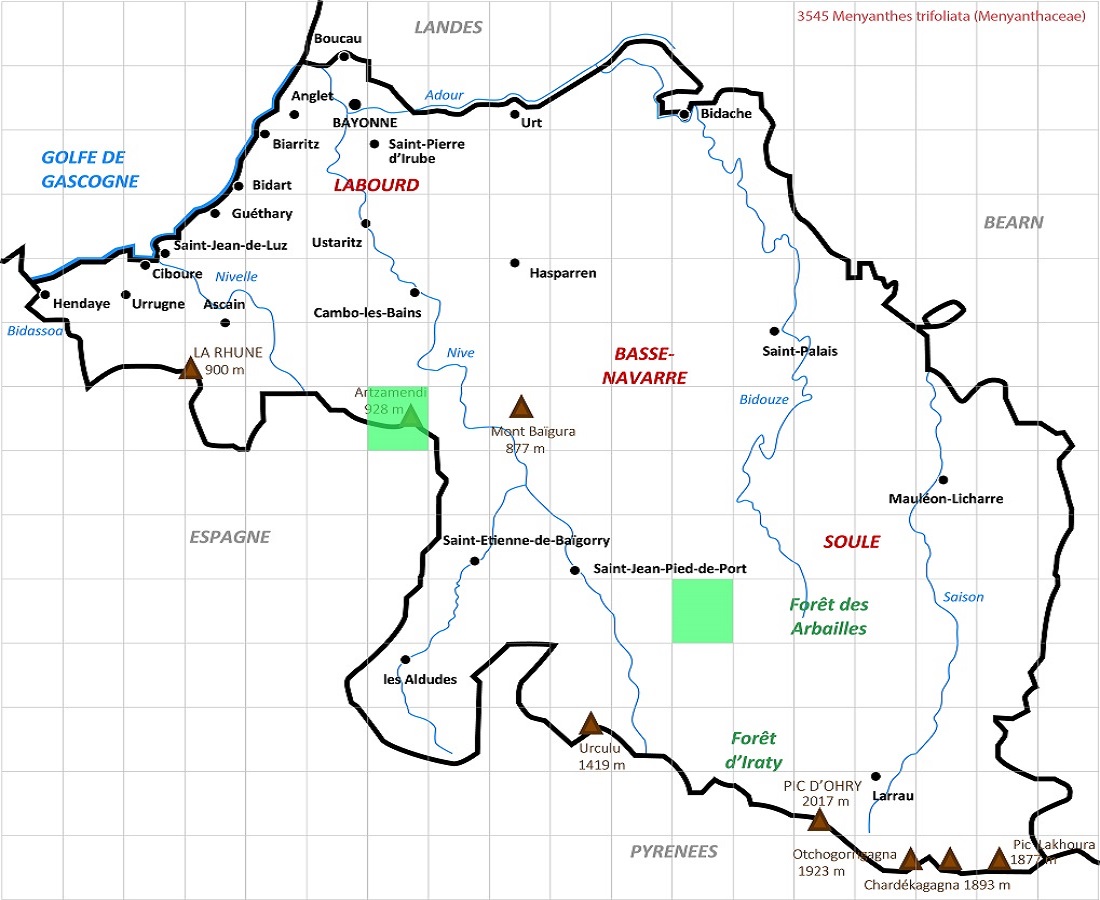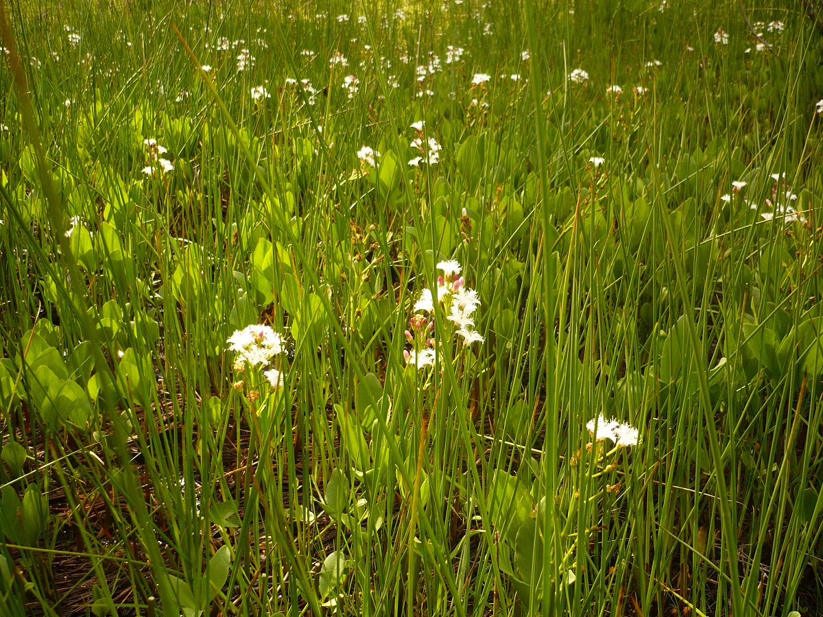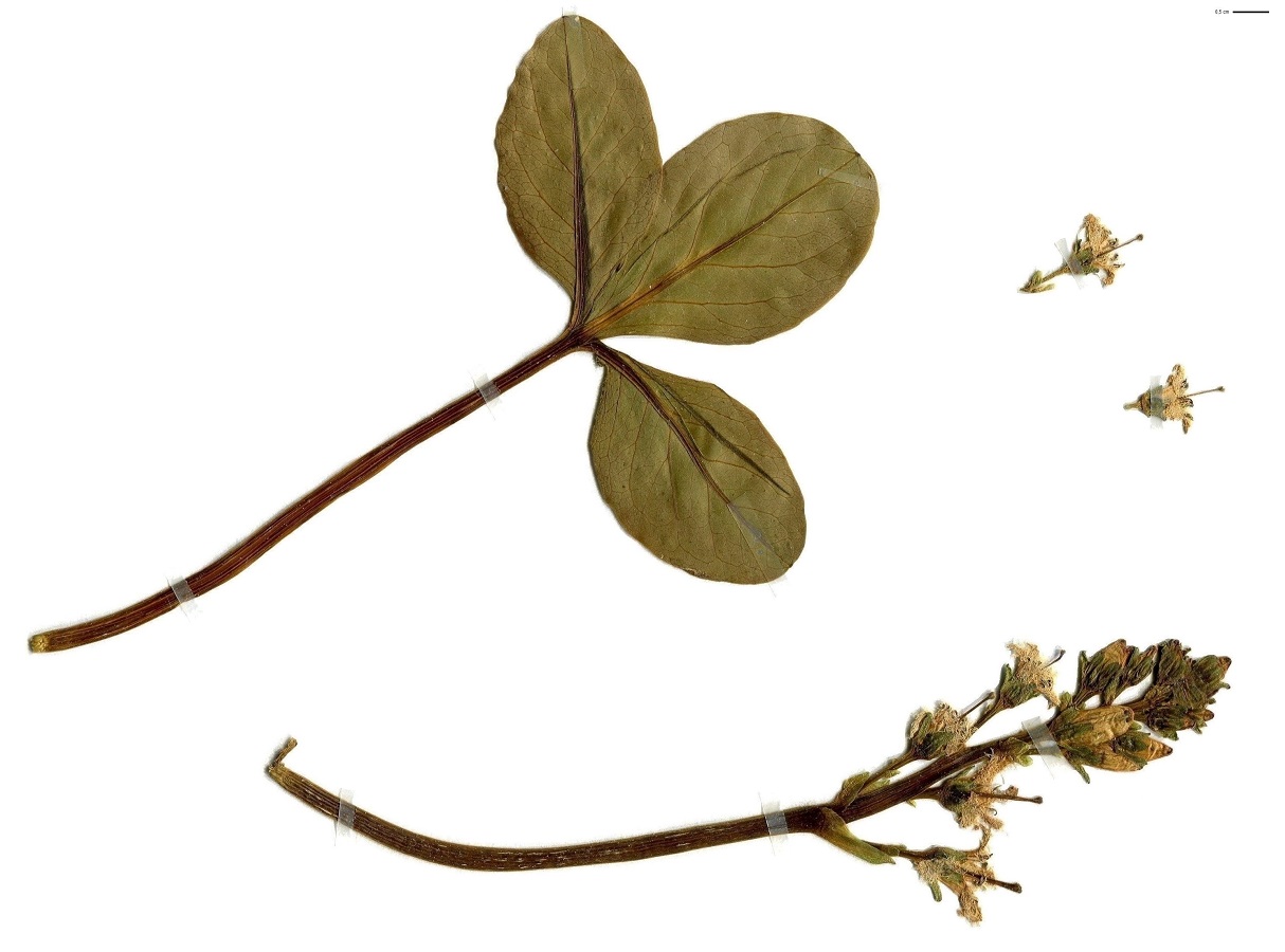 Hydr G – 2-4 dm – Feuilles à 3 folioles (ob)ovales, à long pétiole – Grappe de 10-20 fleurs pédicellées, corolle de Ø ≃ 1,5 cm évasée à (4-)5 lobes blancs fimbriés, rosés dessous