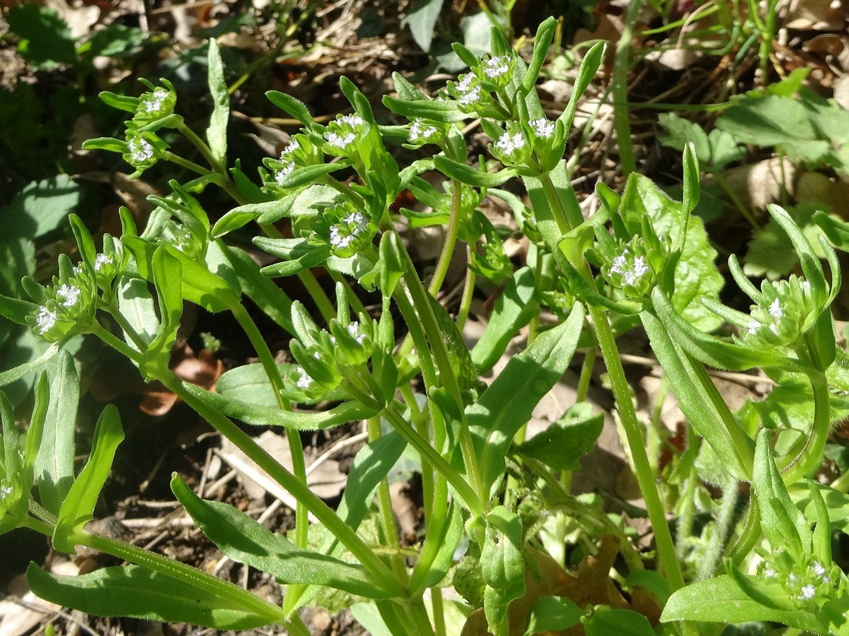 Th – 1-2 dm – Feuilles larges spatulées, bractées oblongues – Corolle bleutée en trompette, à 5 lobes obtus – Fruit oblong de L ≃ 2 mm, à loges stériles atrophiées, calice à peu près nul