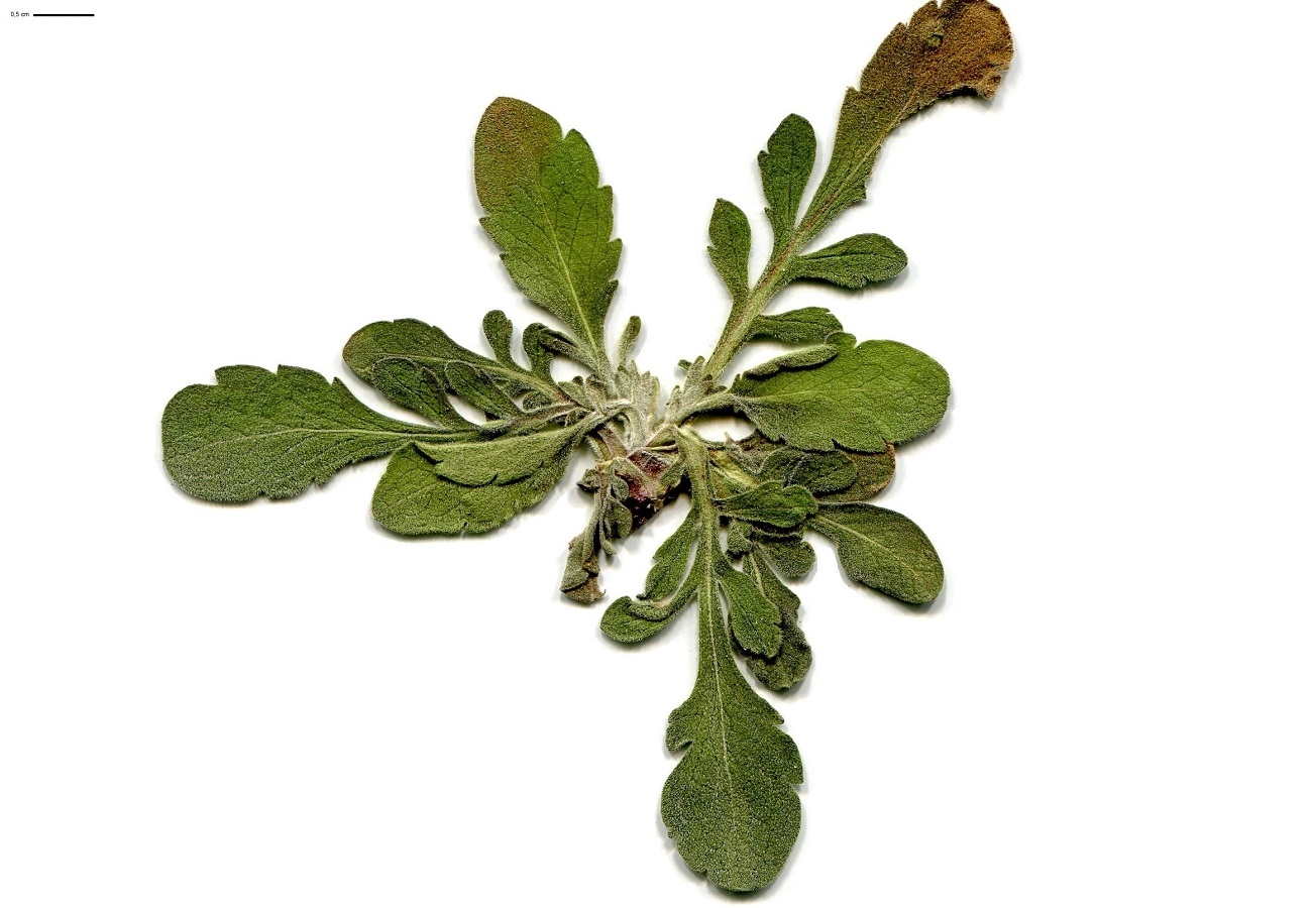 Hc – 2-5 dm – Tige et feuilles ± velues grisâtres, pennées à 5-13 segments ovales à lancéolés, le terminal + grand – Capitule de Ø ≃ 3 cm, fleurs purpurines, les externes rayonnantes